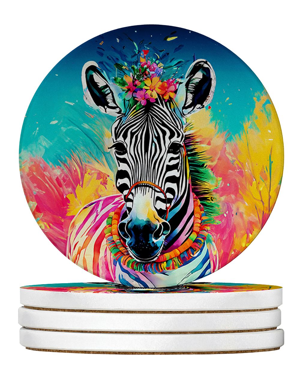 Home > Hippie Animal Zebra Large Sandstone Coasters Pack of 4 Absorbent Round Coasters Decor Gifts for Men or Women, 4 in, Multicolor