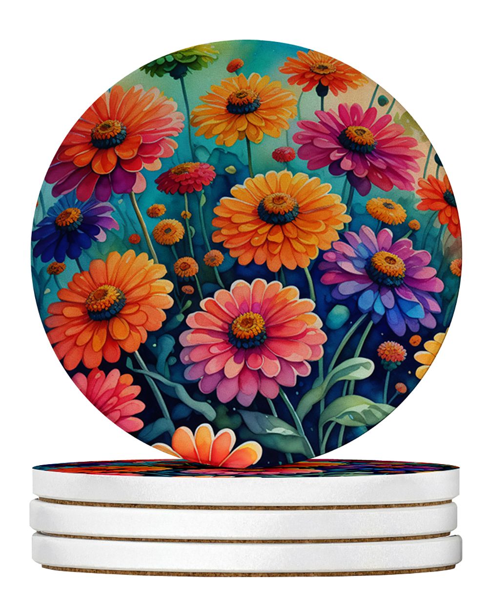 Home > Colorful Zinnias Large Sandstone Coasters Pack of 4 Absorbent Round Coasters Decor Gifts for Men or Women, 4 in, Multicolor