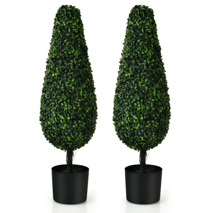 These plump and lush tower-style artificial topiary trees provide a truly lifelike appearance and do not require any maintenance, watering, sunlight, or pruning.