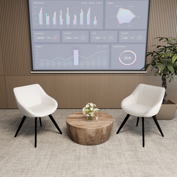29.53" Medieval MDF coffee table and 2 PU dining chair set, drum integrated dining table and black metal leg dining chairs, suitable for kitchen&home