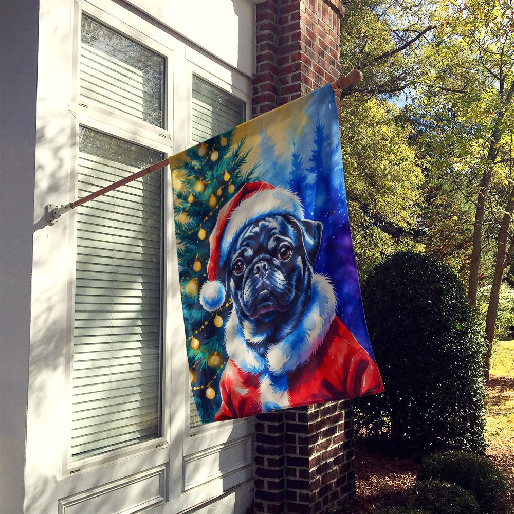 Black Pug Christmas House Flag Large Porch Sleeve Pole Decorative Outside Yard Banner Artwork Wall Hanging, Polyester, House Size, Multicolor