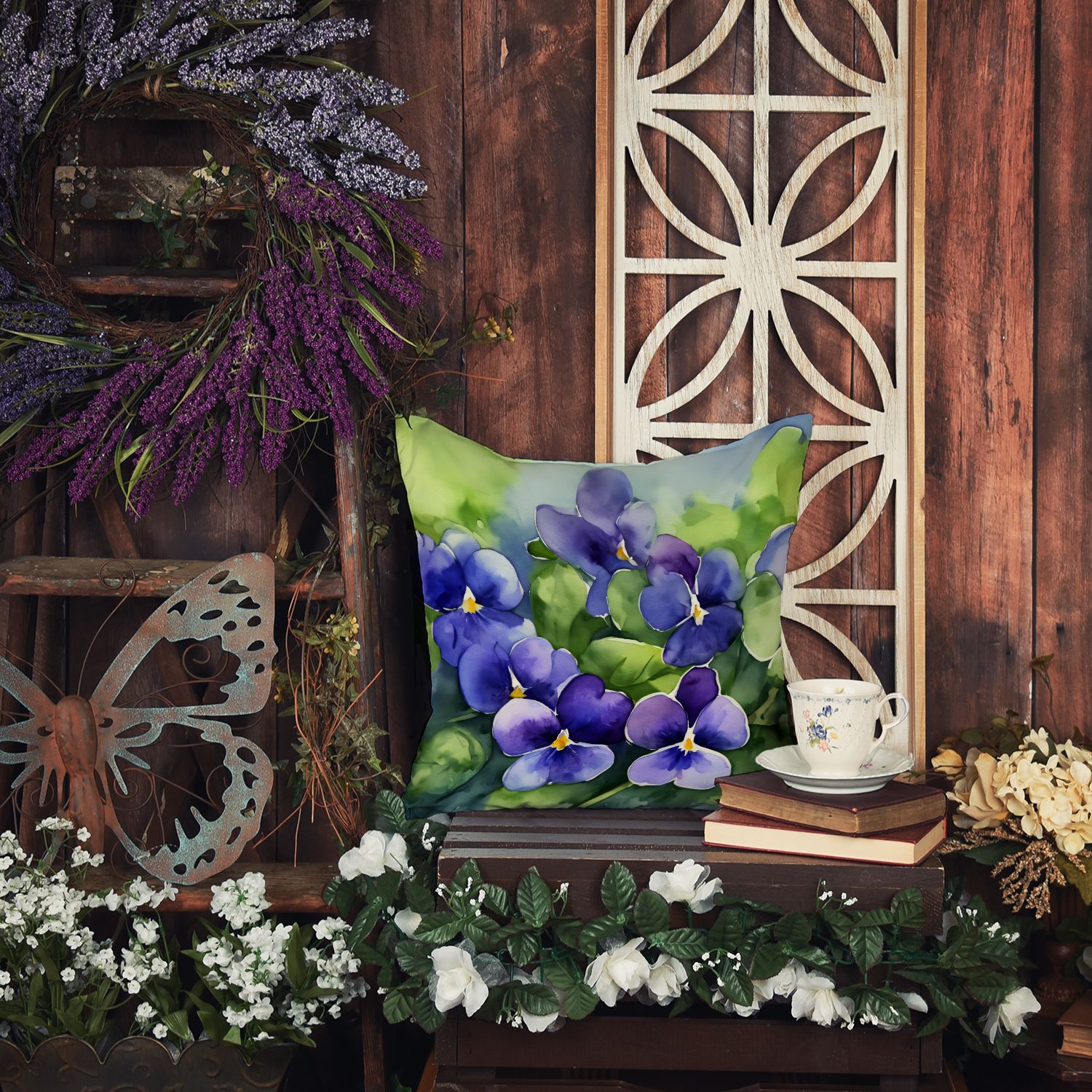 Rhode Island Violets in Watercolor Throw Pillow Machine Washable, Indoor Outdoor Decorative Pillow for Couch, Bed or Patio, 18Hx18W