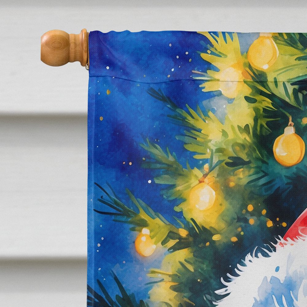 White Poodle Christmas House Flag Large Porch Sleeve Pole Decorative Outside Yard Banner Artwork Wall Hanging, Polyester, House Size, Multicolor