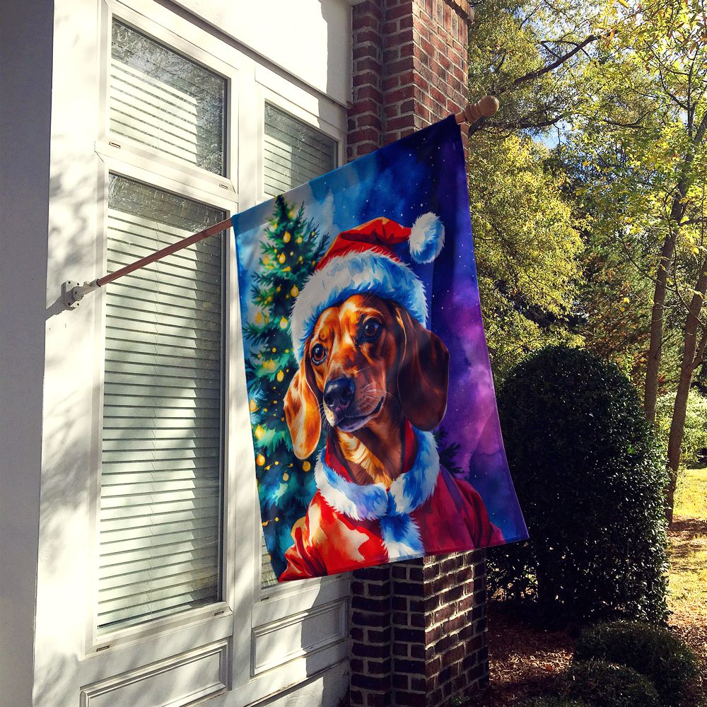 House Flag featuring breed specific Dachshund artwork. Celebrate Christmas with this Christmas Large Flag. Presenting our Heavy Duty Polyester House Size Decorative Sleeve Pole Flag, a vibrant addition to enhance the aesthetic appeal of your home. This large decorative flag, measuring approximately 28 x 40 inches, offers ample coverage and visibility. Each flag is meticulously sewn and made individually, ensuring a unique piece that may slightly vary in size. It's a sleeve pole flag, designed to fit a standard decorative flag pole effortlessly. Please note that the flag pole and bracket are not included and should be purchased separately. What sets our flag apart is its dual-sided print. The design is mirrored on both sides of the fabric, allowing for uniform visibility regardless of the angle. Printed in full color, our flag showcases vibrant hues that truly stand out. To ensure lasting vibrancy and durability, the dyes are heat-set into the fabric. This ensures your flag remains bright and captivating through various weather conditions. Elevate the look of your home with our Heavy Duty Polyester House Size Decorative Sleeve Pole Flag!