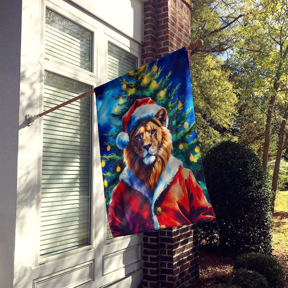 Lion Christmas House Flag Large Porch Sleeve Pole Decorative Outside Yard Banner Artwork Wall Hanging, Polyester, House Size, Multicolor
