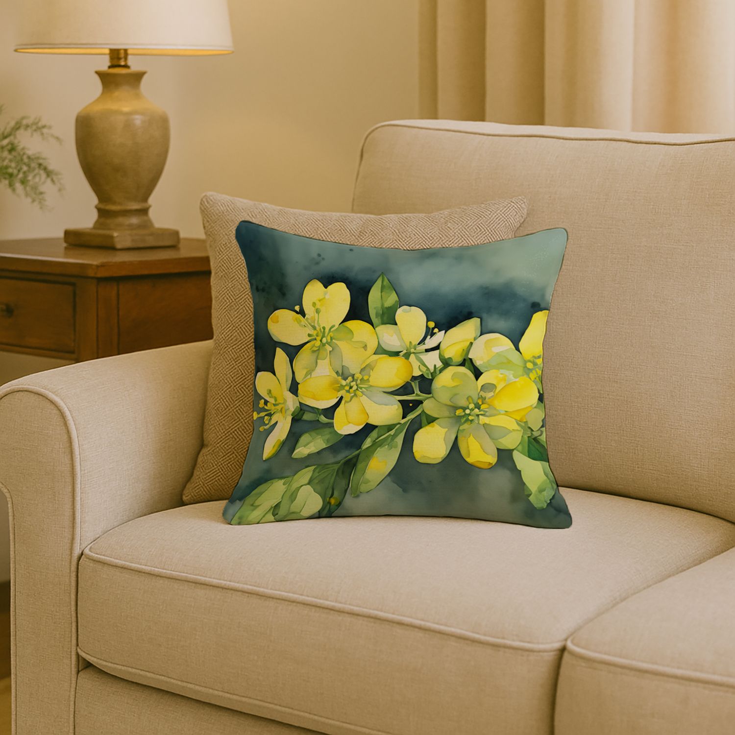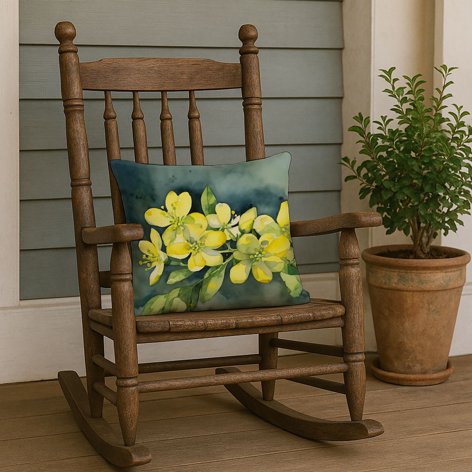 South Carolina Yellow Jessamine in Watercolor Throw Pillow Machine Washable, Indoor Outdoor Decorative Pillow for Couch, Bed or Patio, 18Hx18W