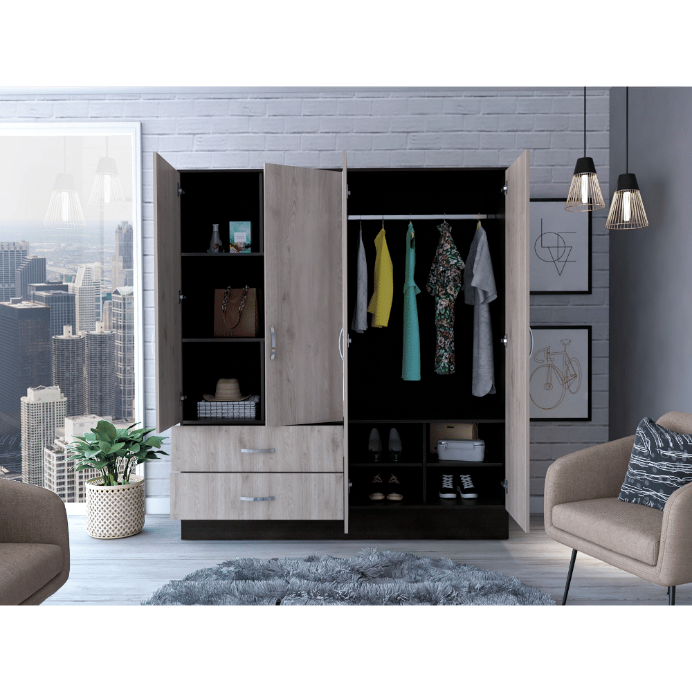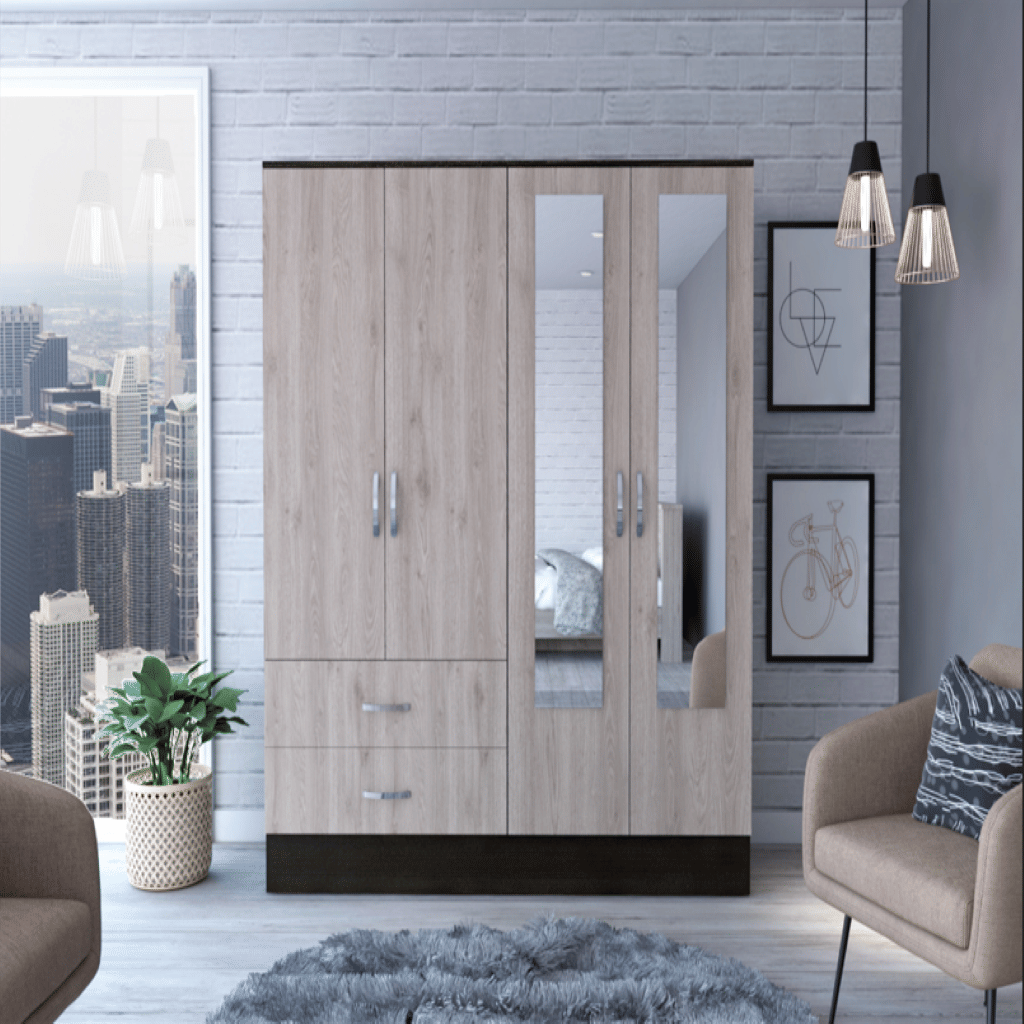 Home > Gangi Armoire, Double Door Cabinet , Two Mirrors, Metal Hardware, Two Drawers, Rod, Six Shelves