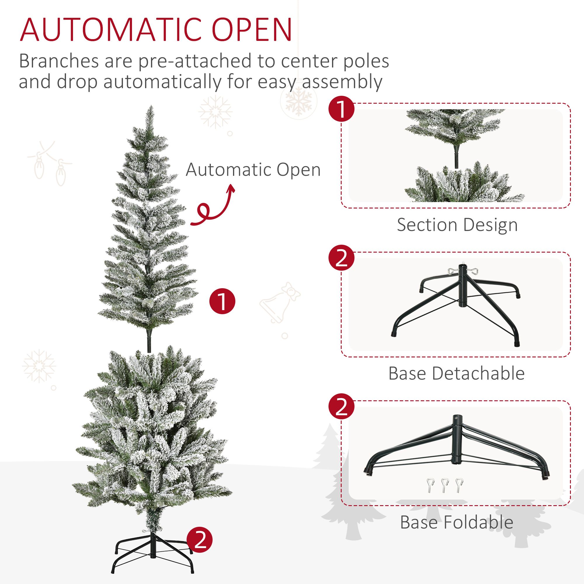 HOMCOM 6ft Flocked Artificial Christmas Tree Pencil Design with 394 Branches Detachable Base Green and White
