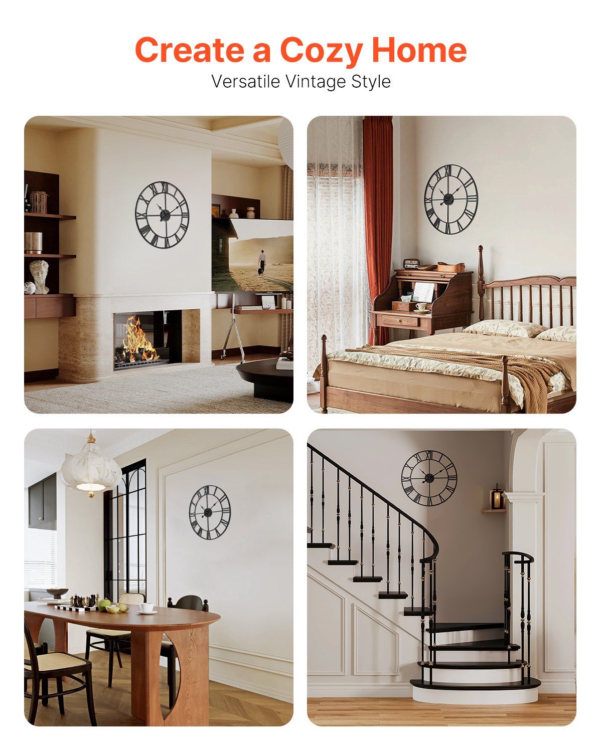 This 24-inch wall clock is a great option for home decor, offering silent operation, accurate timekeeping, and a no-assembly design. Its versatile vintage style brings a touch of nostalgia and elegance to any space, whether in the living room, bedroom, or office.