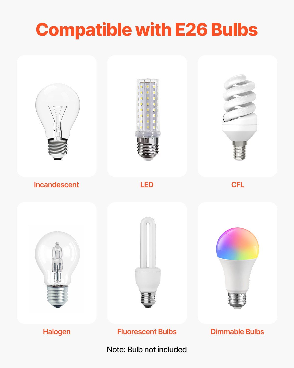 This kitchen pendant light has a 1 E26 socket, working with incandescent, LED, CFL, and halogen bulbs (bulbs not included). Each bulb can be up to 60W, giving you plenty of light options!