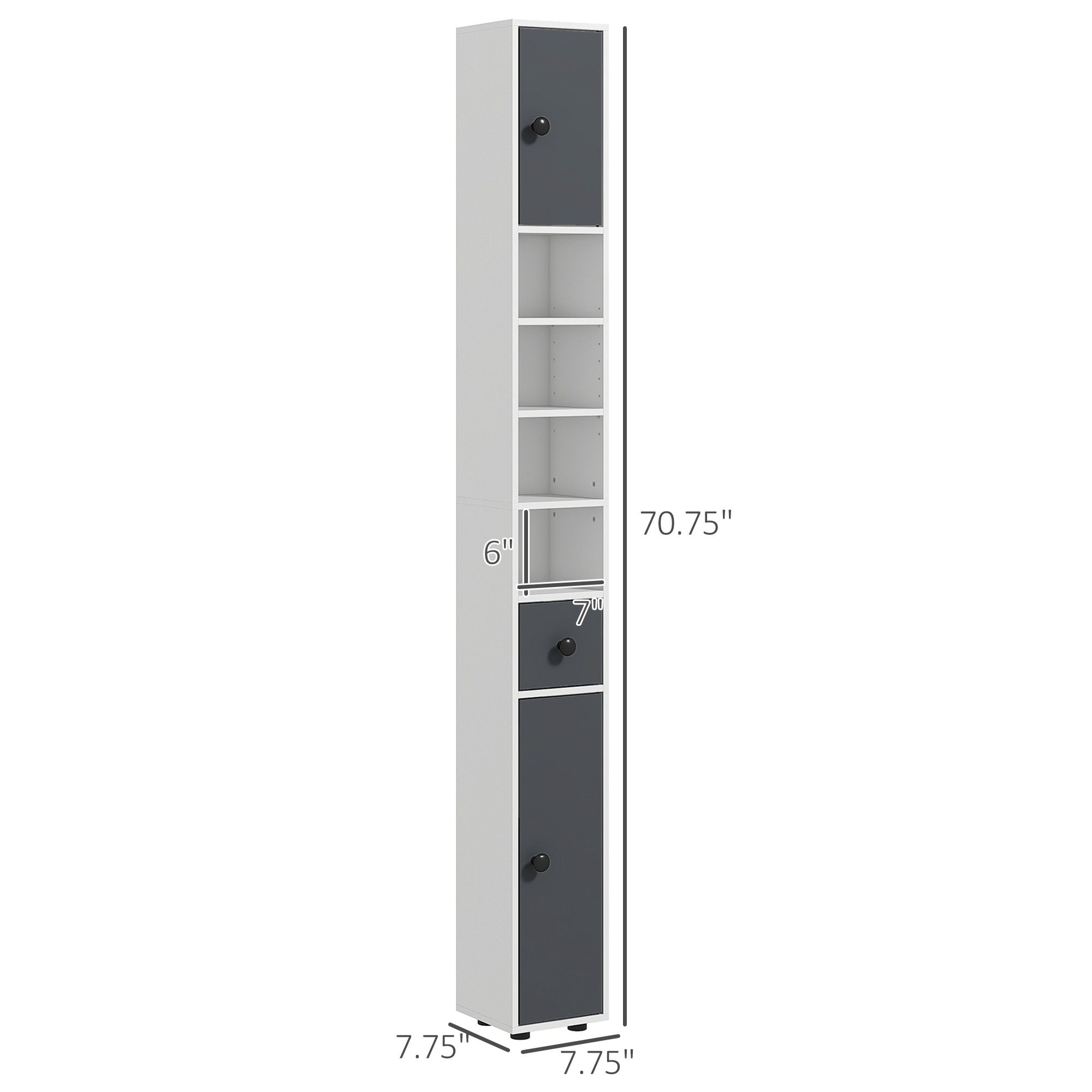 Kleankin 71" Tiny Cabinet for Bathroom, Small Toilet Paper Cabinet with Open Shelves, 2 Cabinets, Adjustable Shelves, Gray