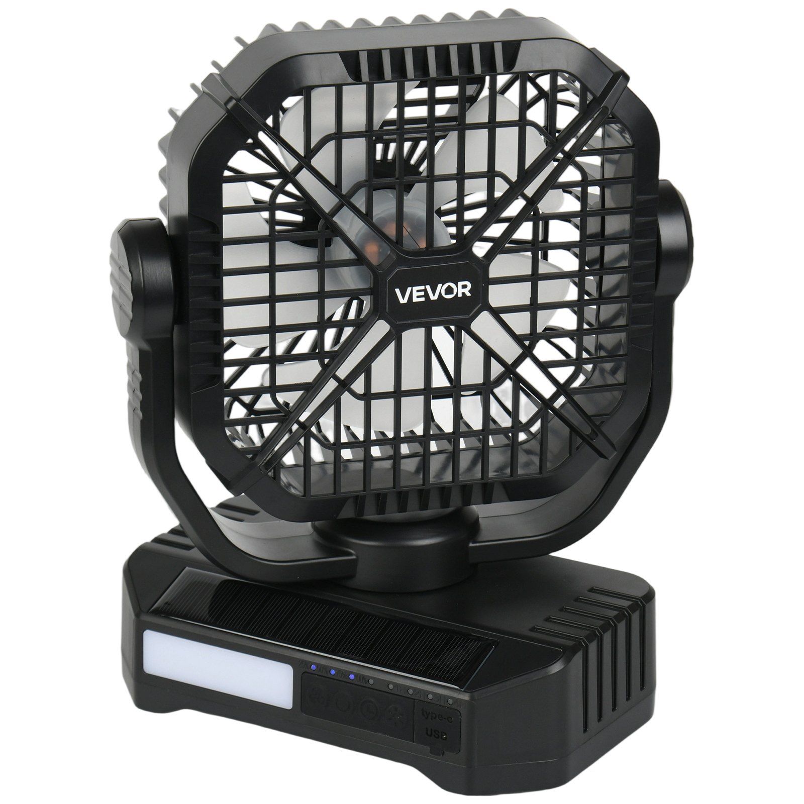 10400mAh Solar Fan Camping Fan with Solar Panel LED Lantern 7W 8 Inch