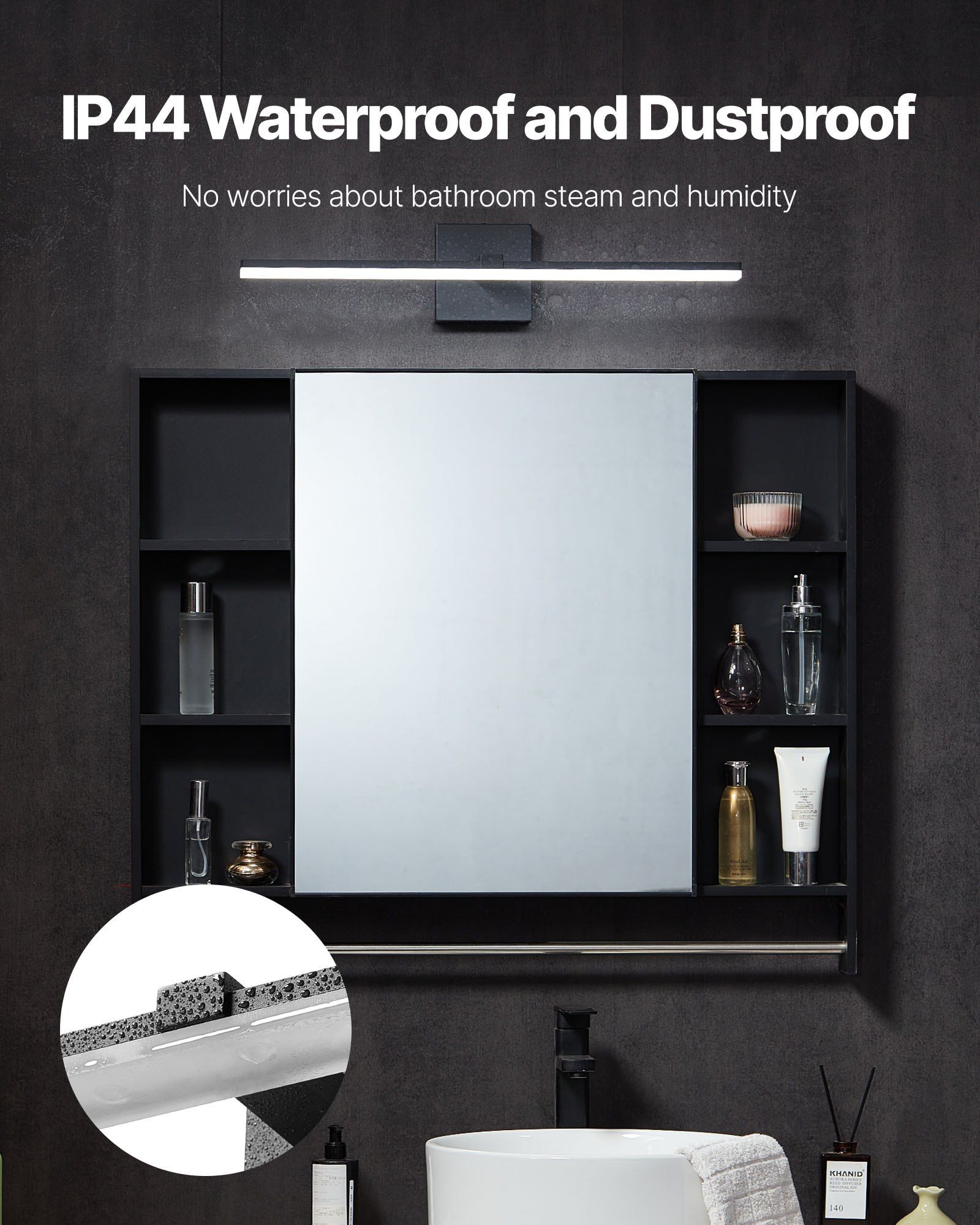 2.Premium Materials, Built to Last: Made from quality materials, this over mirror lighting for bathroom is durable and sturdy. With a waterproof design and long-lasting LED brightness, it brings enduring radiance to your vanity setup