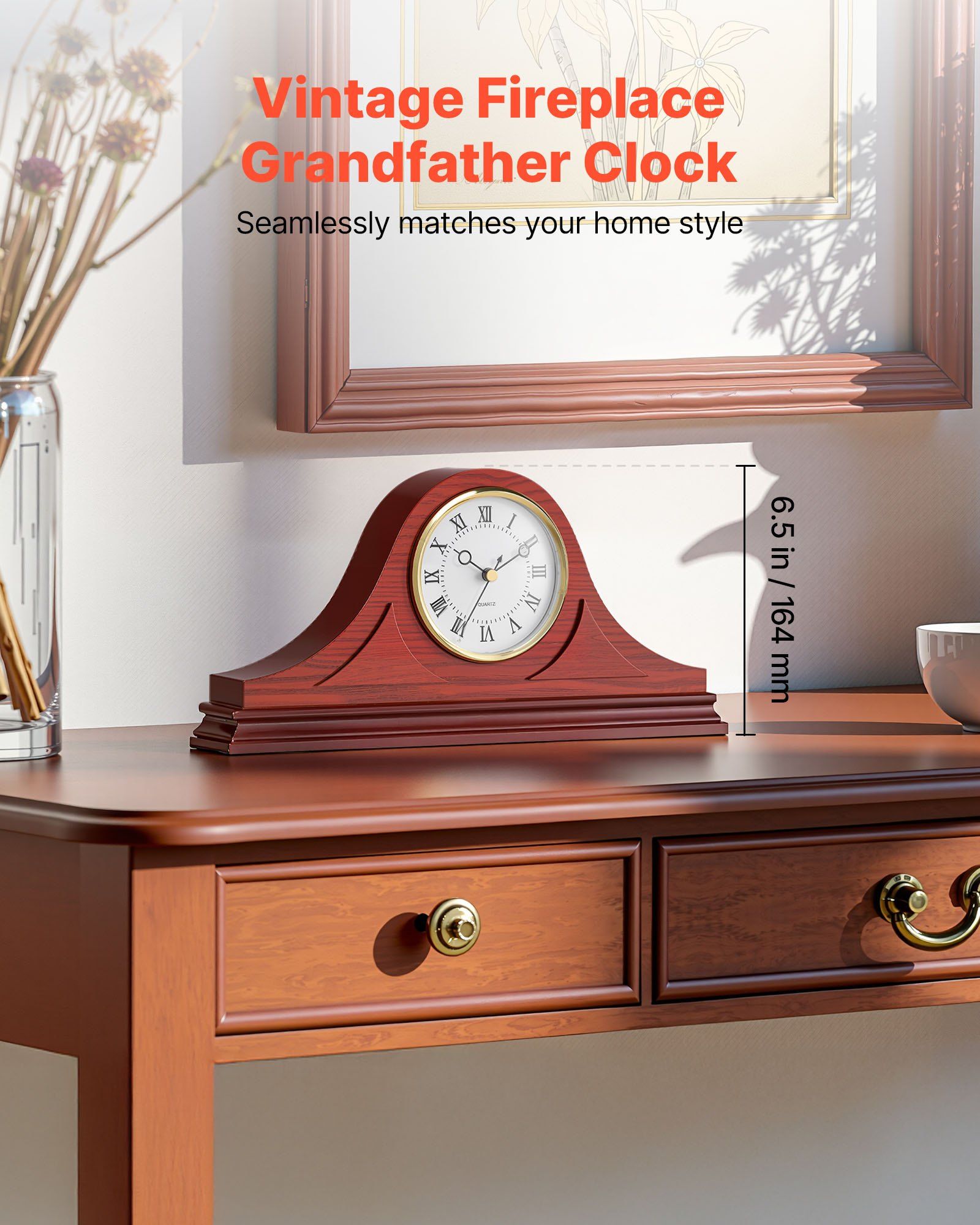 1.Elegant Design: This nostalgic fireplace grandfather clock, classic design and 6.4 in (162.5 mm) height, seamlessly fits into various home settings, adding a vintage and warm atmosphere to your space