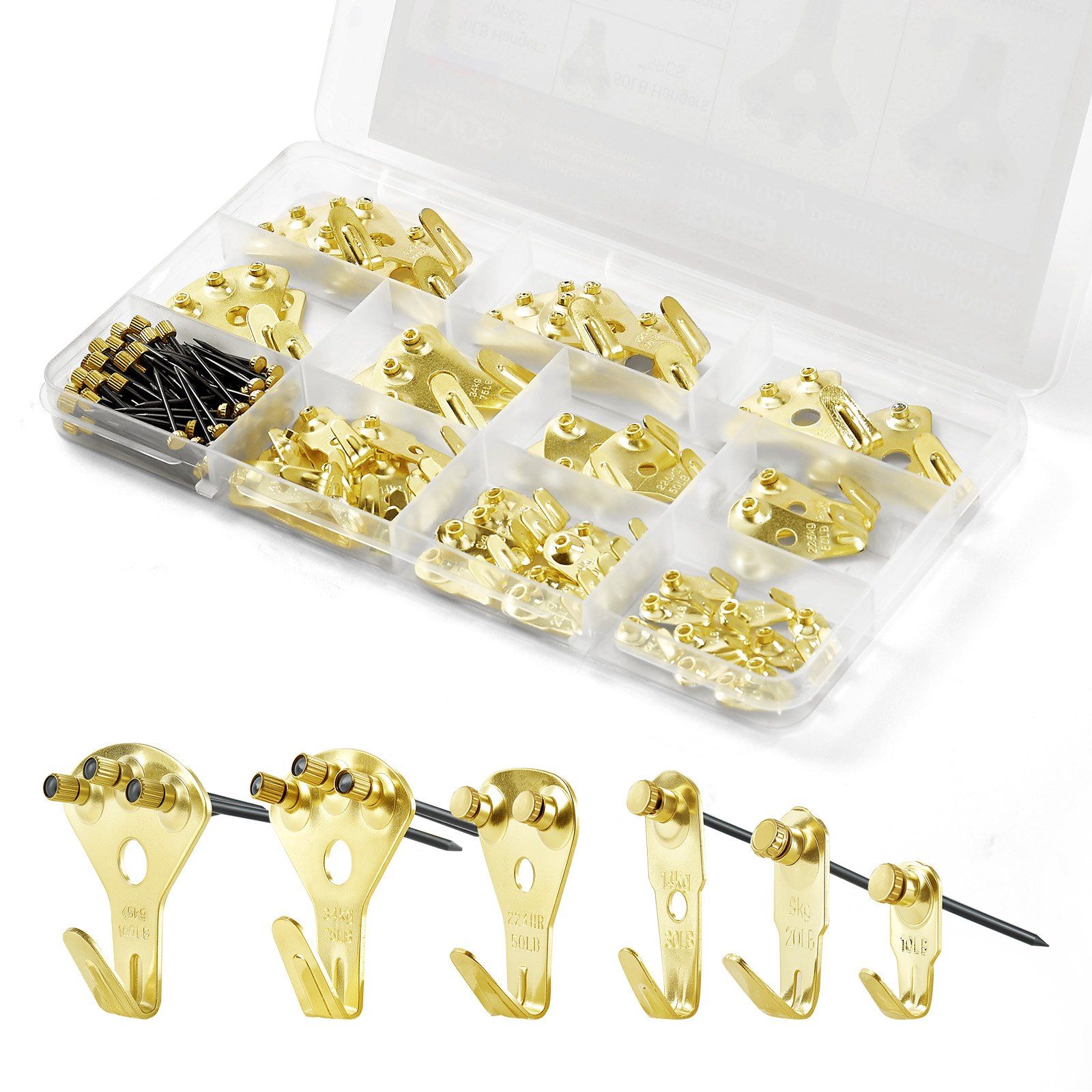 1.Multiple Options Available: Our 130-piece German-style picture hanging kit includes 8 x 100lbs hooks, 4 x 75lbs hooks, 5 x 50lbs hooks, 12 x 30lbs hooks, 10 x 20lbs hooks, 10 x 10lbs hooks, along with 43 x 1-inch nails and 38 x 1.39-inch nails to meet your everyday hanging needs. It also comes with a compartmentalized storage box to keep things neat and tidy