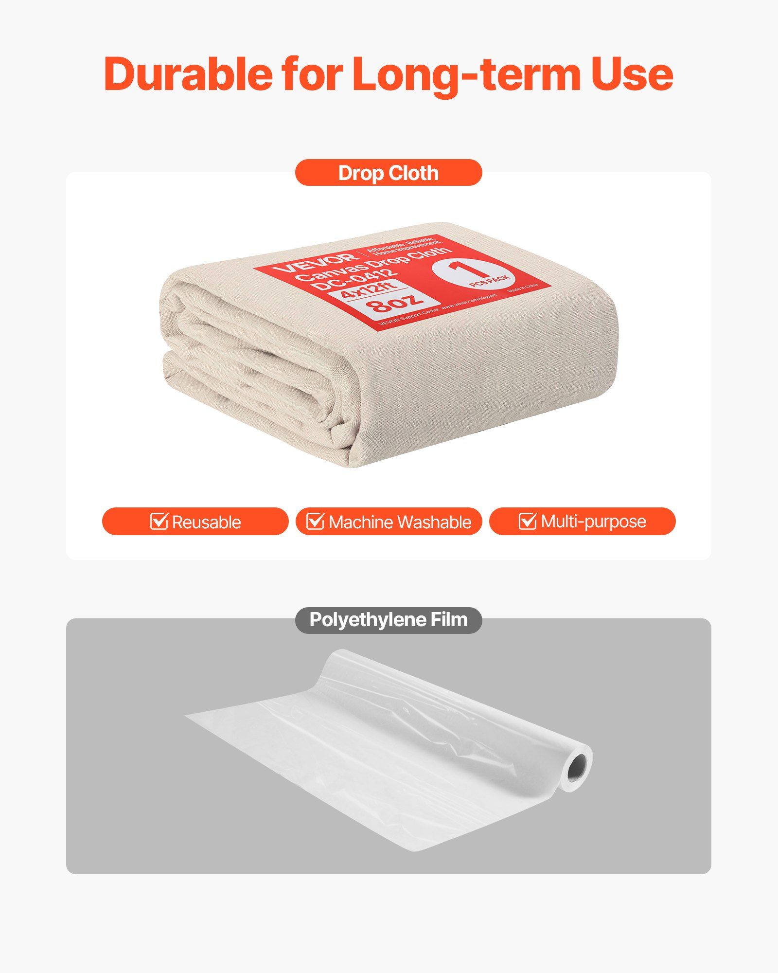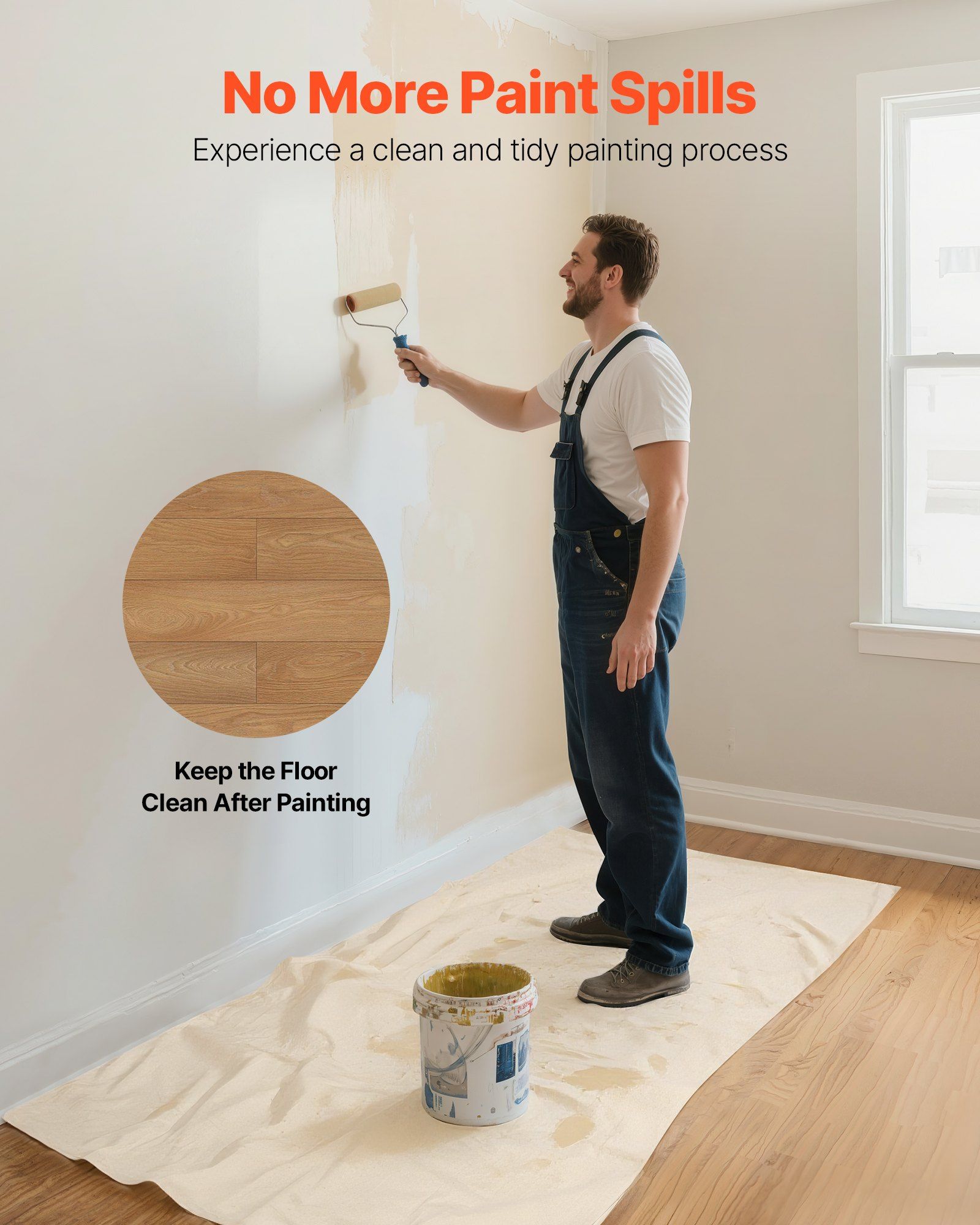 5.Easy to Clean: This drop cloth for painting is washable, resistant to deformation or damage. It offers the most convenient and efficient cleaning method, and is suitable for both washing machines and dryers, saving you time and effort