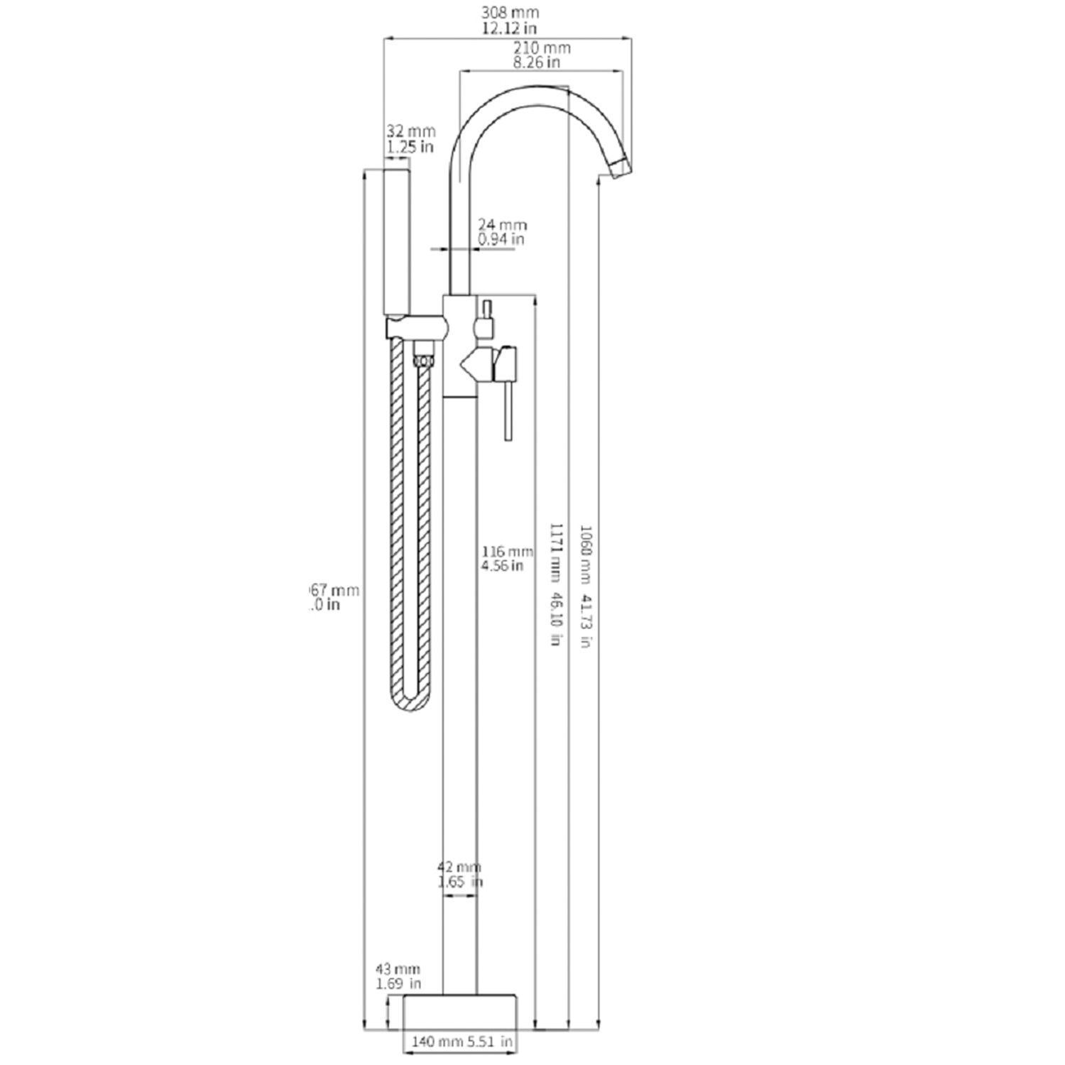 5.Overall Height: 46.1", Spout Height: 41", Spout Reach: 7" .Please see picture for detailed dimensions.