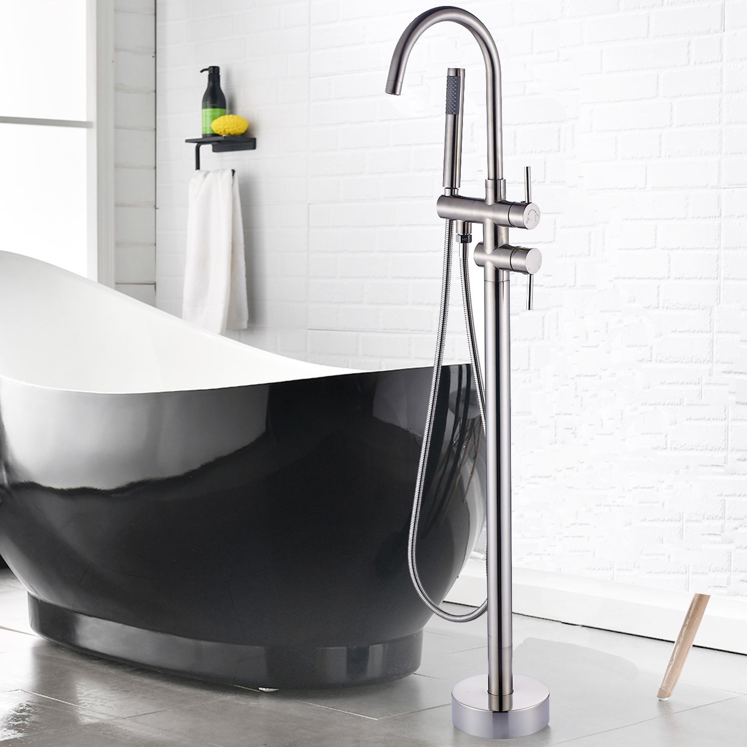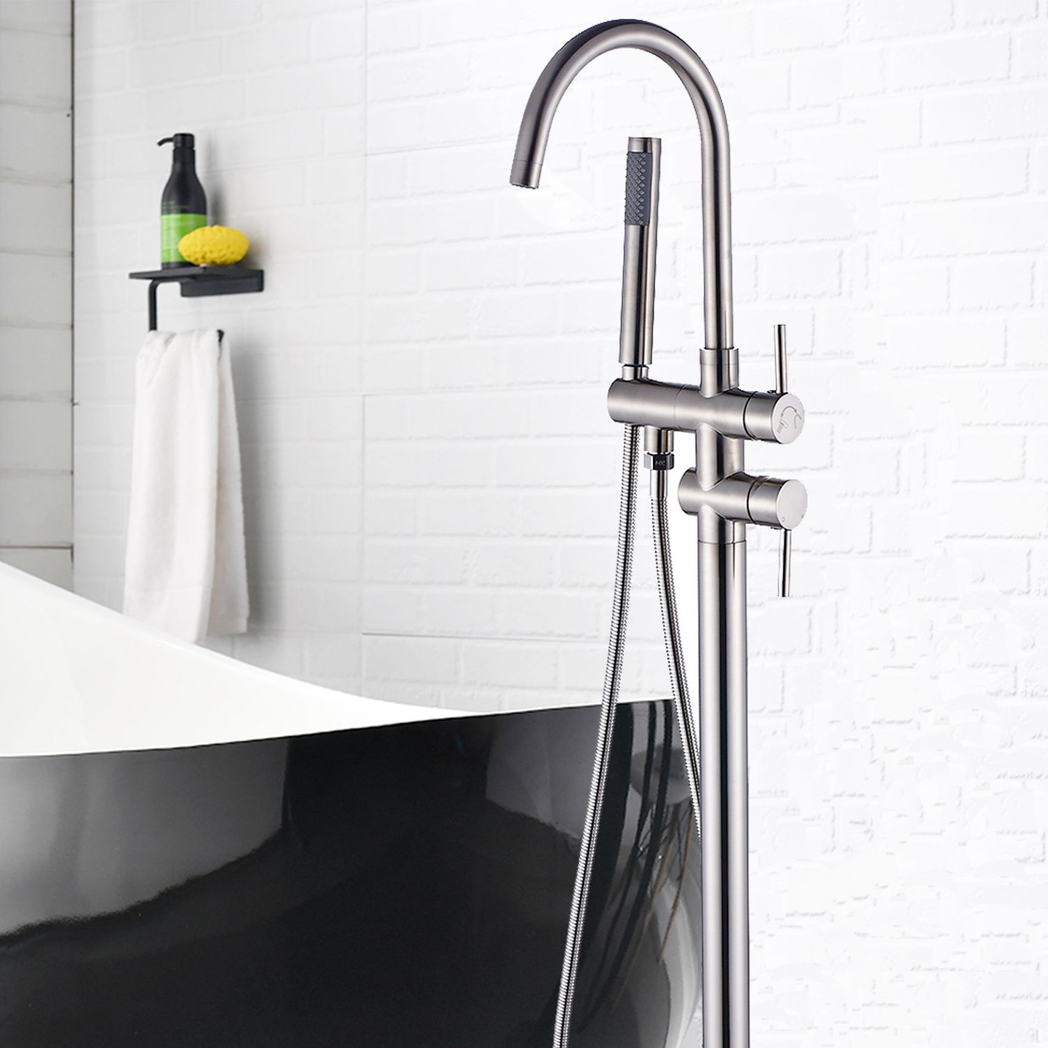 1.Immerse yourself in luxury with our solid brass freestanding bathtub faucet! Its finish prevents corrosion, while the multi-layered electroplating ensures durability against bathroom humidity.