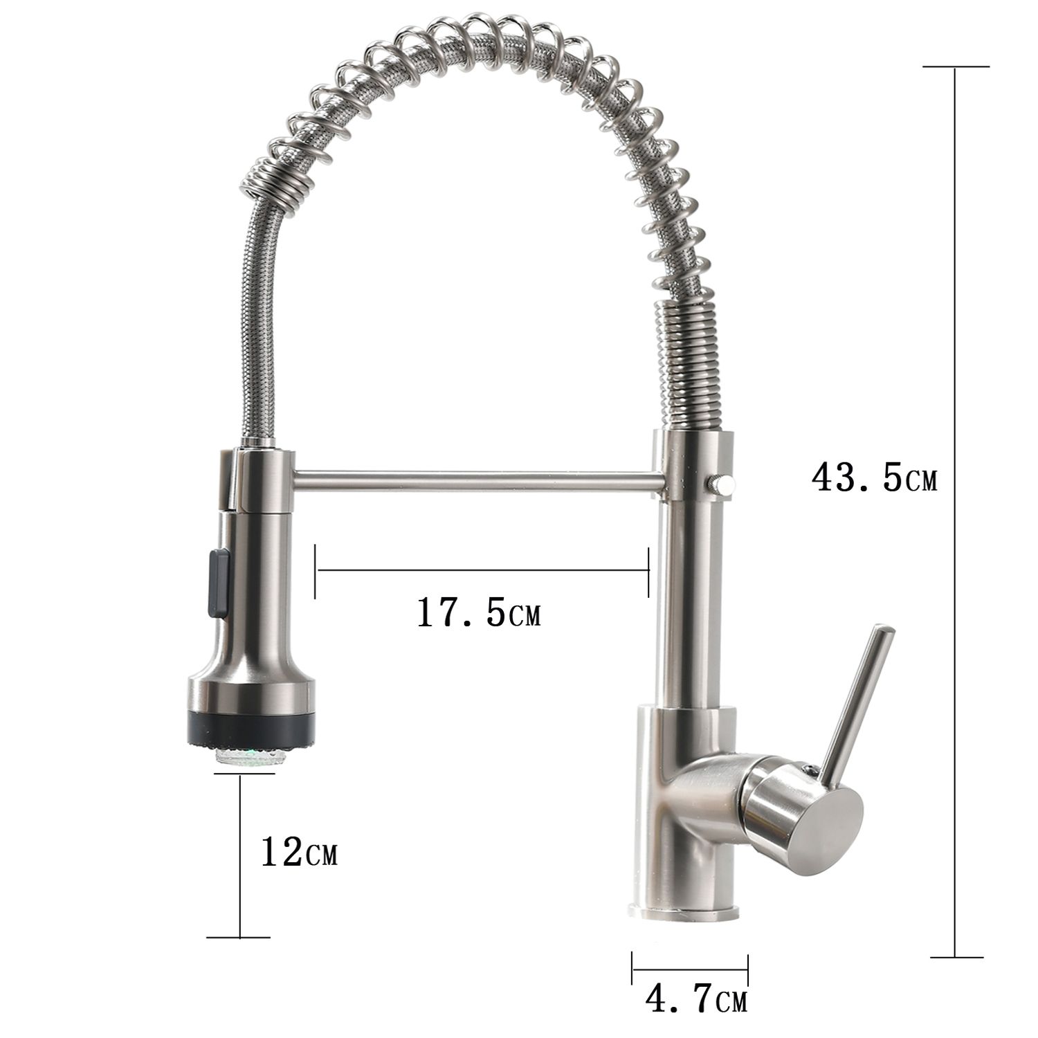 Give your space a stylish refresh with the Kitchen Faucet with Spring Spout. A dual-action head is attached to a retractable, nylon-wrapped hose, providing the choice of an aerated stream or a powerful spray. The high-arching, swiveling spring spout makes cleaning large pots and pans a breeze, and displays a professional look that's sure to make a statement.
