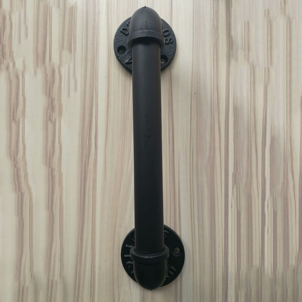 Handmade Medieval Retro Industrial Style Steel Pipe Interior Pull Door Handle Iron Black Antique Handles