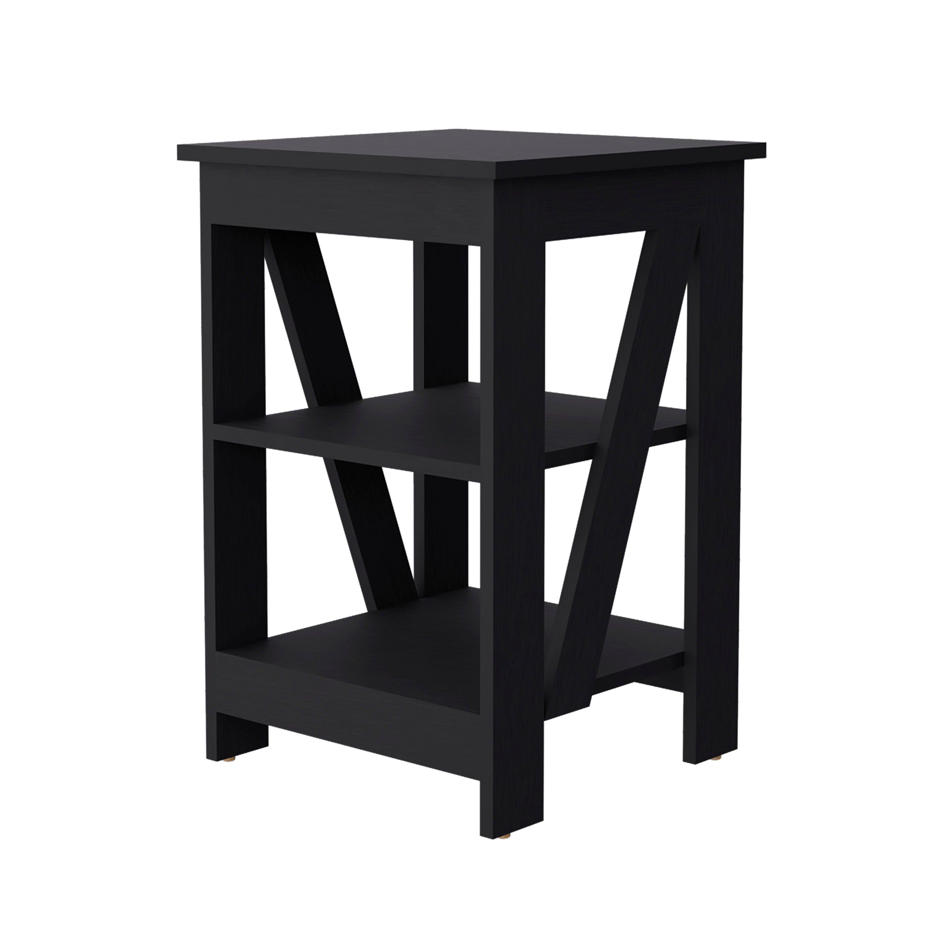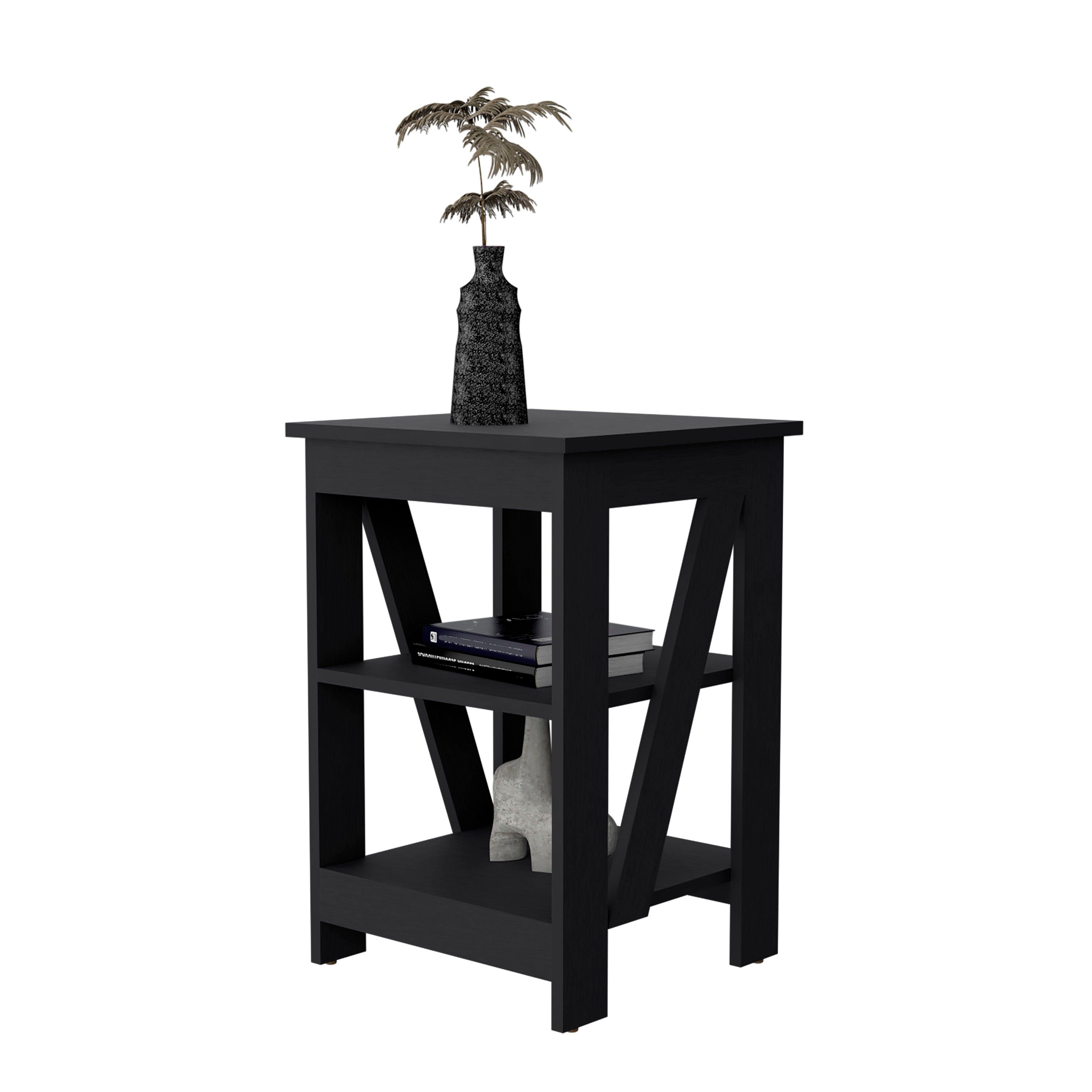 Elevate your living room with our stylish Side Table with Two Shelves. Crafted from high-quality engineered wood, this side table combines elegance and practicality. It features two spacious shelves for organizing books, magazines, or remote controls, and a top surface ideal for displaying a decorative vase or lamp. Its sleek and modern design seamlessly fits into any decor style, making it a versatile addition to your home. Durable and compact, it's perfect for enhancing both small and large living spaces.