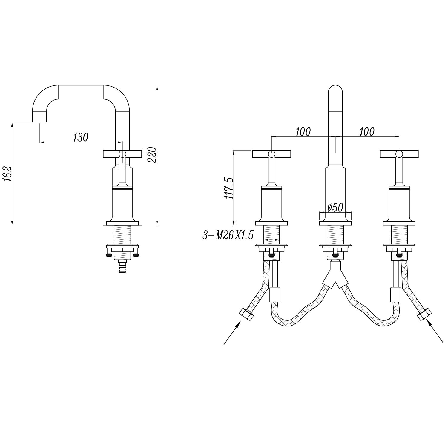 2.Solid copper structure brass gold three holes bathroom faucet with 2 handles for easy to control the water flow and the temperature.