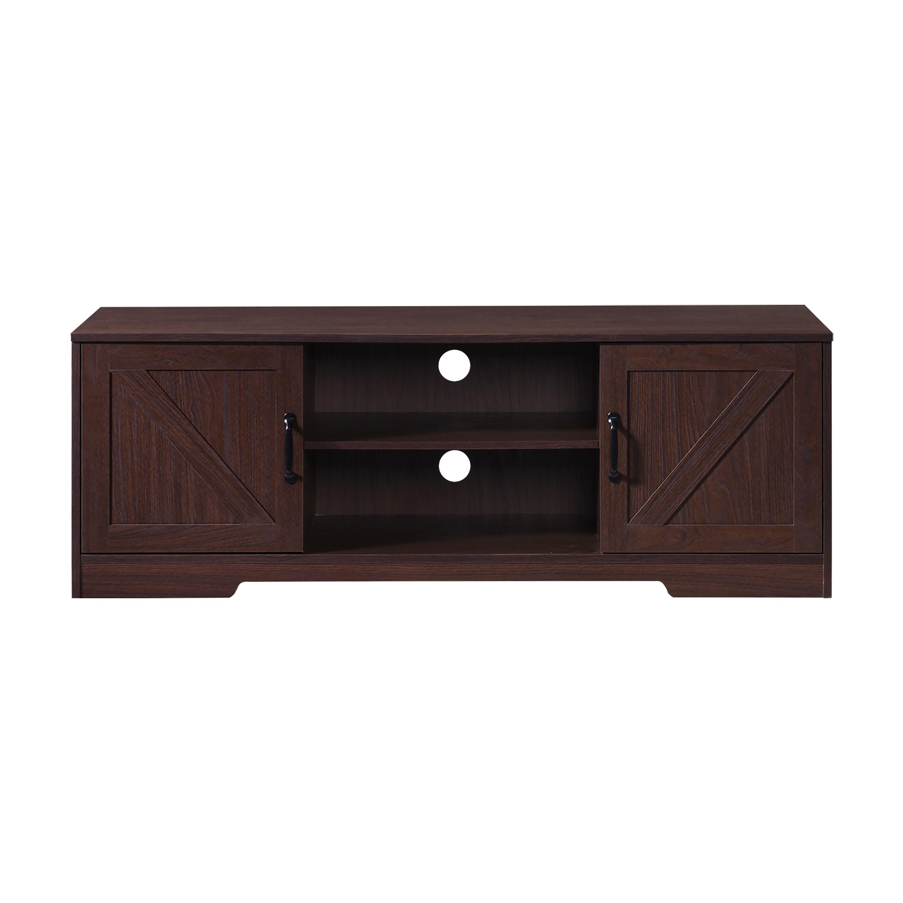 The design features sliding barn doors that provide a farmhouse touch, while the spacious compartments and shelves offer ample storage for your media essentials. Whether you're looking to enhance your living room decor or need a functional piece for your home entertainment setup, this TV stand is a perfect choice.