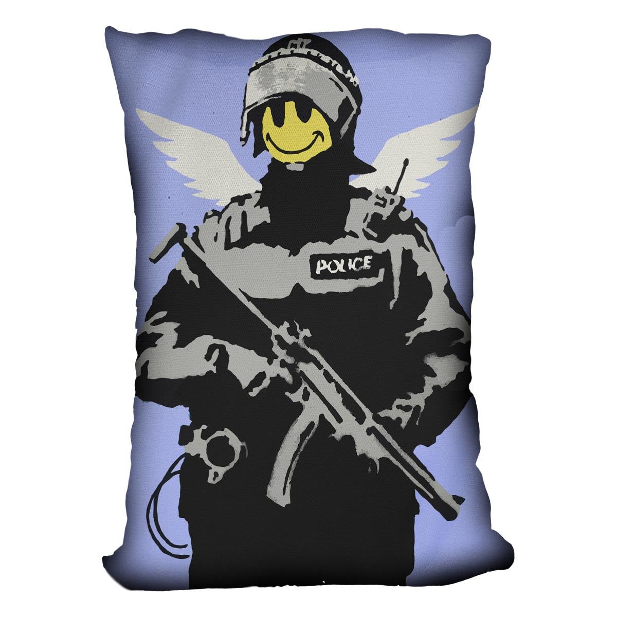 Banksy Smiley Angel Policeman Blue Cushion Banksy Smiley Angel Policeman Blue Cushion