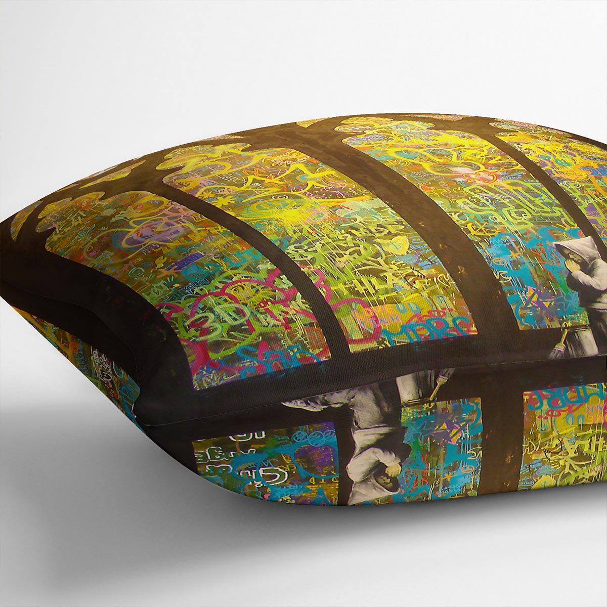 Banksy Stained Glass Window Cushion Banksy Stained Glass Window Cushion