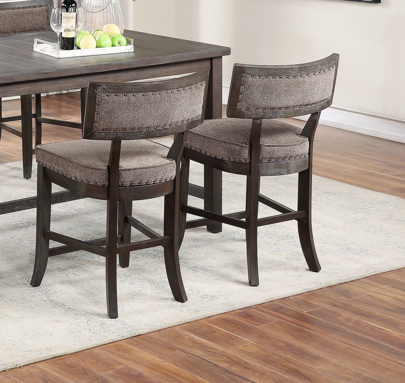 Product Description:Made with solid wood, this timeless and elegant counter height table dining set . The comfortable extra cushioned dining chairs have a nail head trimming finishing, it is designed with luxury in mind. With a cabinet on the side, this set also save you space in the kitchen and offer extra storage for your silverware.Product Dimension:Counter Height Table: 66" x 36" x 36" H4x High Chairs - 23" x 21" x 38"H ,24"H SeatListing Include: 5pc Counter Height Dining Set (Dining Table w Side Shelves And 4x High Chairs) Only.Simple Assembly Required.