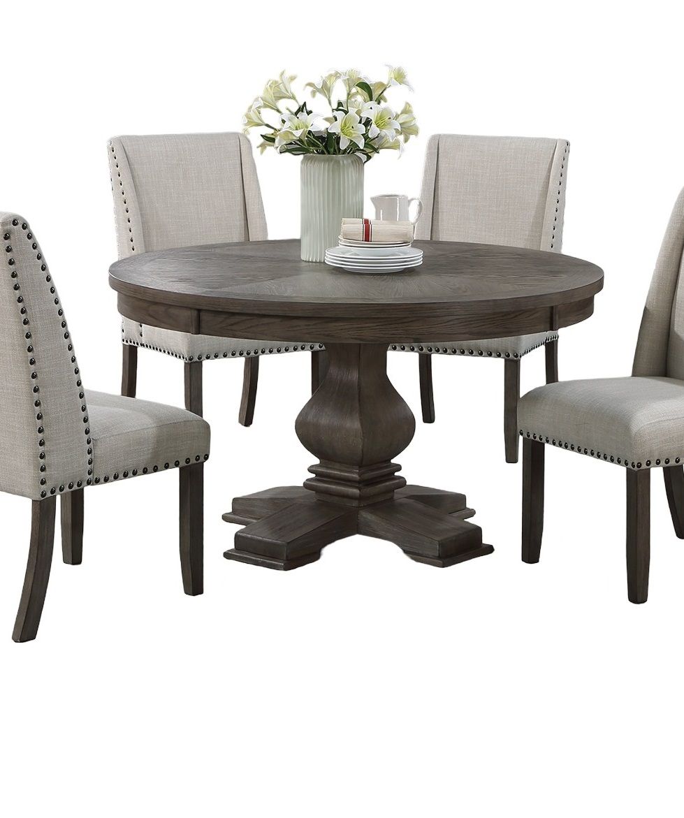 This Dining Table provides the perfect backdrop for every occasion, with its round shape making it ideal for small to medium-sized gatherings. With its sleek design and standing on a single pedestal, it not only maximizes space but also adds a touch of sophistication to any dining area. Whether placed in a kitchen nook or a formal dining room, its versatile style effortlessly complements any decor. For a complete dining set, the matching chairs are available for separate purchase.