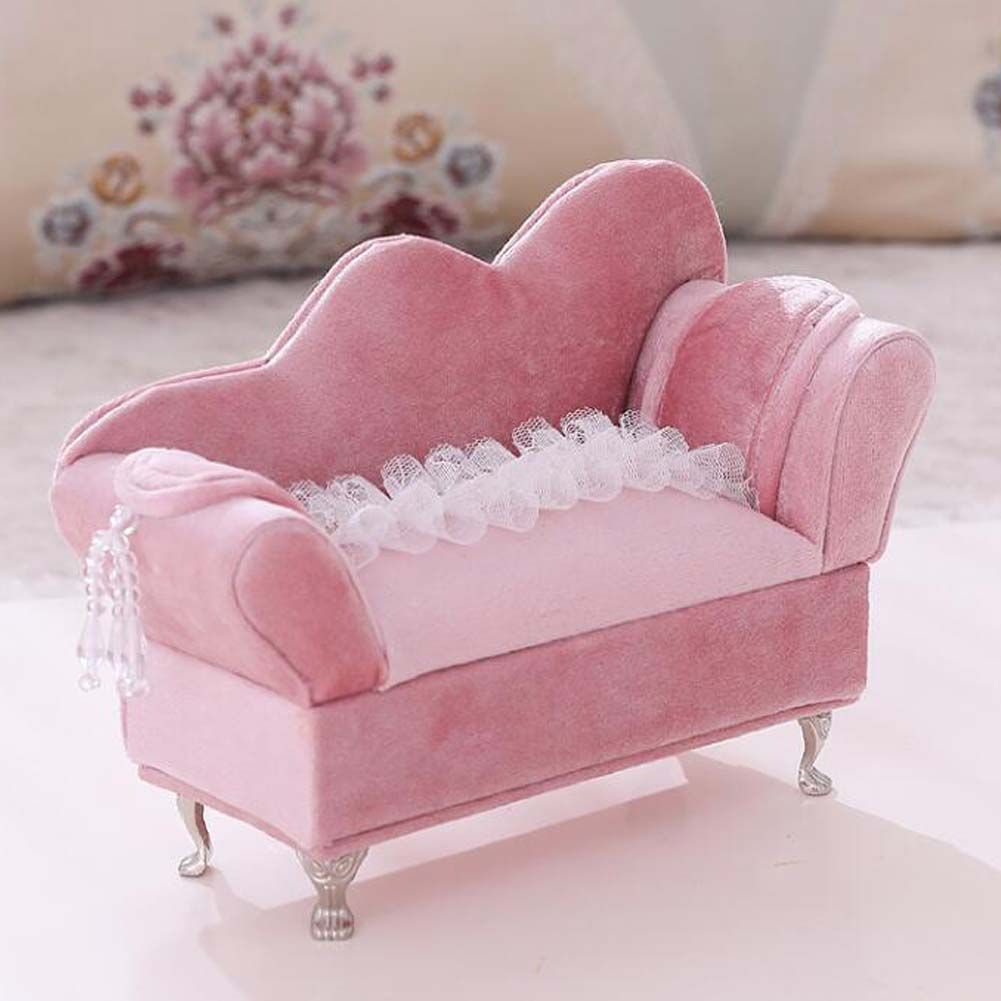 Pink Velvet Jewelry Box Storage Organizer Lace Princess Mini Chaise Longue Furniture Shape Jewelry Holder Pink Velvet Jewelry Box Storage Organizer Lace Princess Mini Chaise Longue Furniture Shape Jewelry Holder