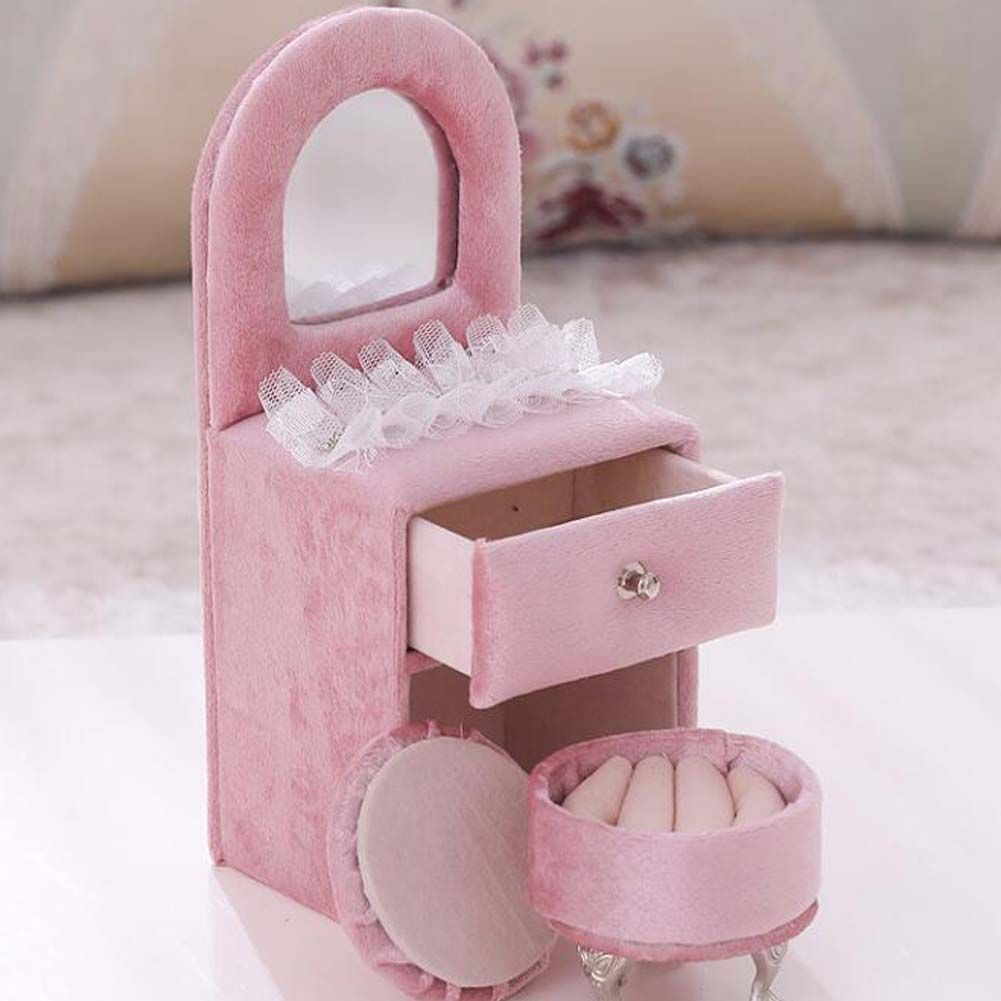 Pink Velvet Mini Jewelry Box Storage Organizer Lace Princess Dresser Furniture Shape Jewelry Holder Pink Velvet Mini Jewelry Box Storage Organizer Lace Princess Dresser Furniture Shape Jewelry Holder