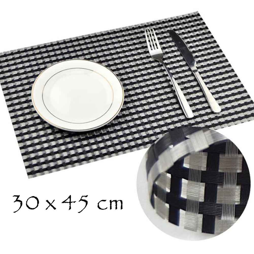 Home > 4 Pcs Non-slip Protection Table Mats Dining Placemats PVC Placemats Woven Placemats Coffee Shop Mats, Black and White