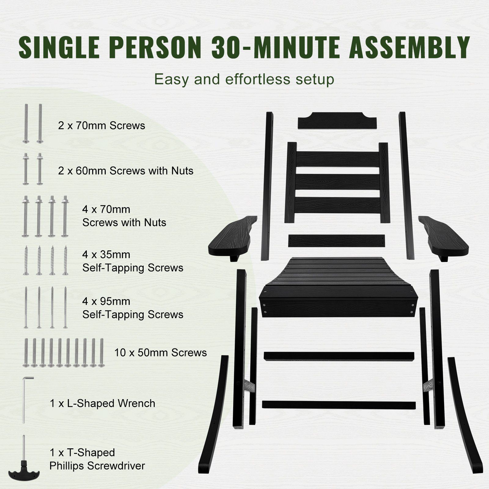 1.Sturdy and Durable Material: This porch rocker is made from high-density polystyrene (HIPS) material, providing solid construction with enhanced impact resistance and stability. It supports up to 400 lbs, suitable for various body types. The material resists deformation, fading, and weather conditions, ensuring long-lasting use.