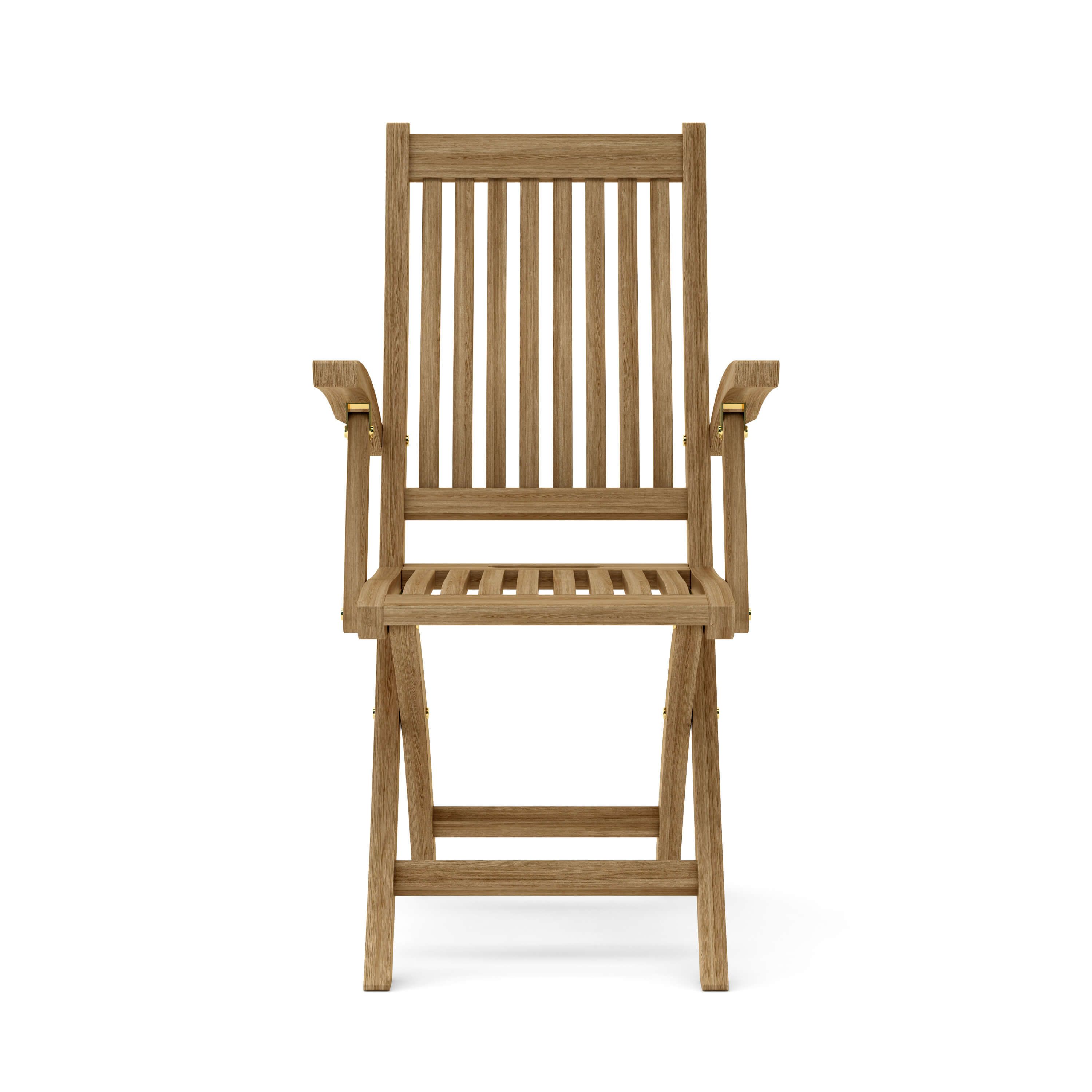 The Tropico Folding Armchair is the perfect chair for an outdoor dining experience in a restaurant or café, your patio or yard. It is economical but yet strong and comfortable for sitting extended periods of time. Generously sized for added comfort, it is crafted from genuine Grade-A Teak, ideal for weathering the outdoors. The chair folds for easy storage and movement so you can accommodate guests when you need to and hide the set when you don’t. Add any table of your choice for a complete set. Arrives in a pair set of two pieces, no assembly required.