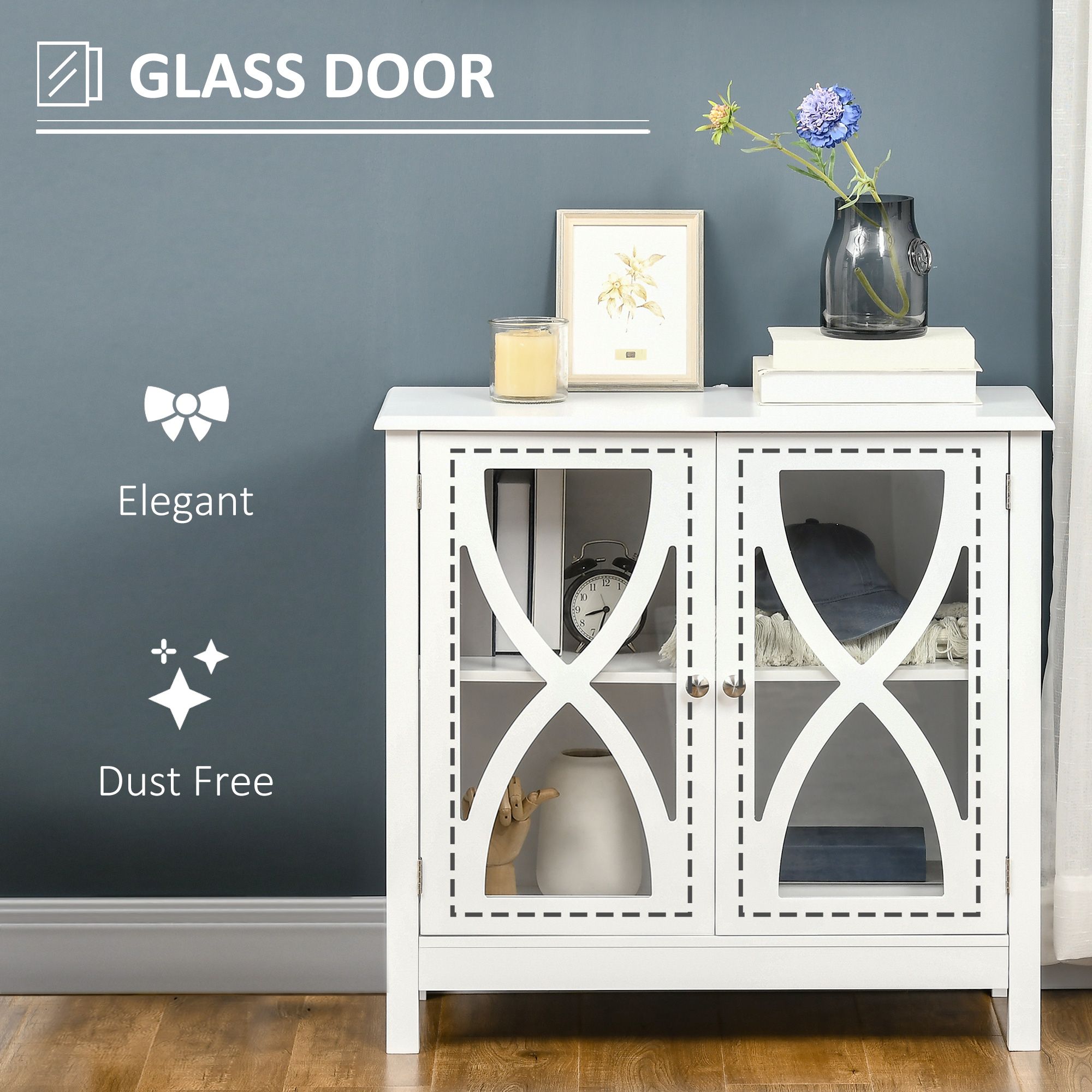 Kitchen Sideboard, Glass Door Buffet Cabinet, Bathroom Storage Cabinet with Adjustable Storage Shelf for Dining Room, Living Room, White