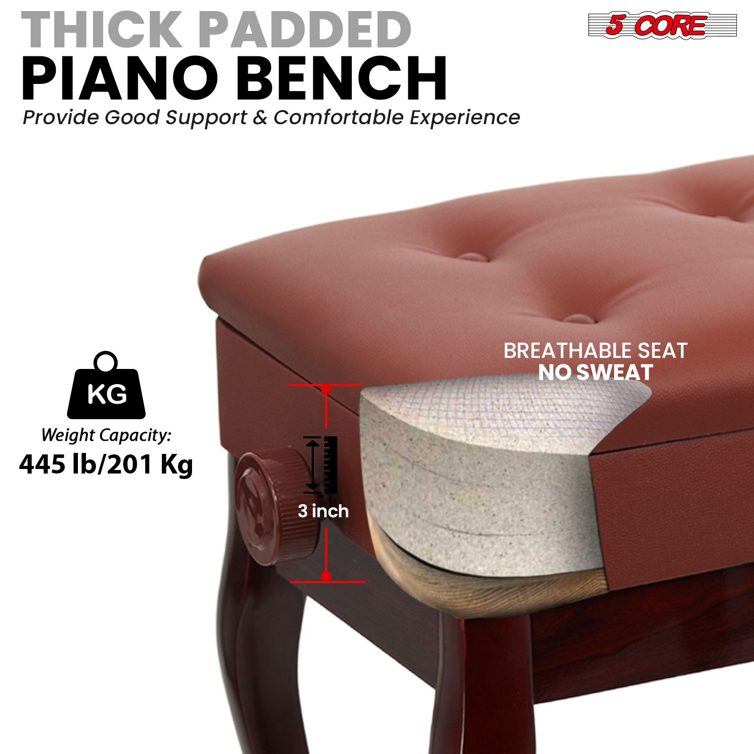 STYLISH DESIGN - Elevate your piano setup with our elegantly crafted piano chair, designed to complement any room decor. The seat features 13 decorative buttons.