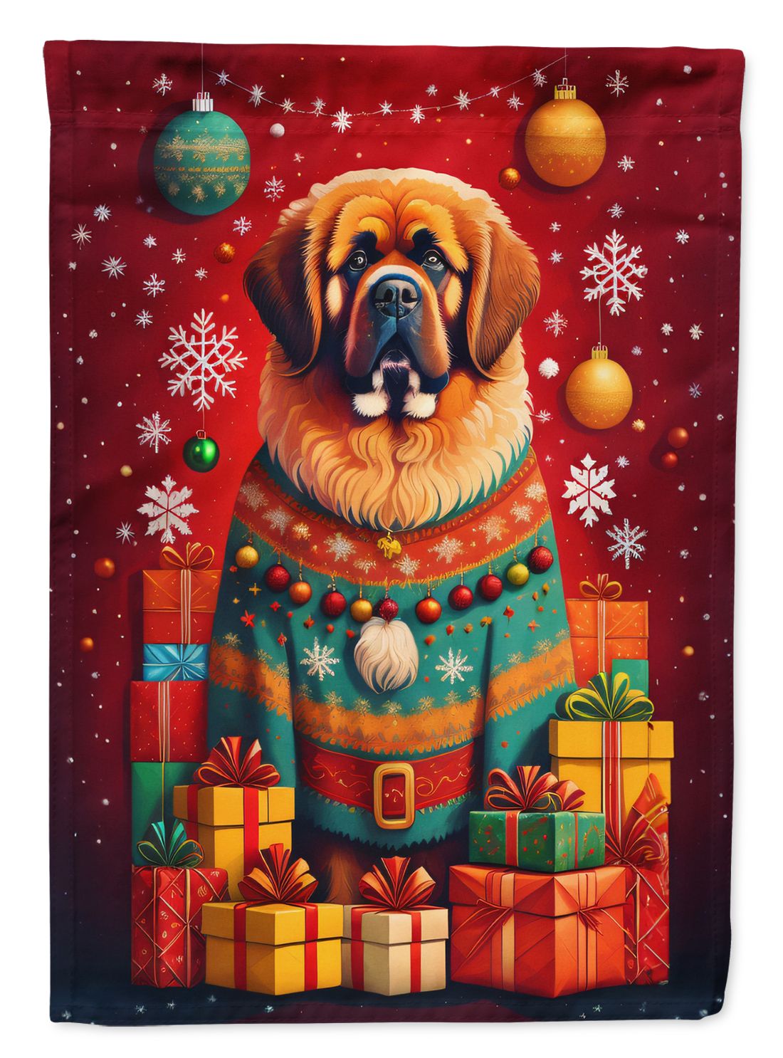 Tibetan Mastiff Holiday Christmas House Flag Large Porch Sleeve Pole Decorative Outside Yard Banner Artwork Wall Hanging, Polyester, House Size, Multi