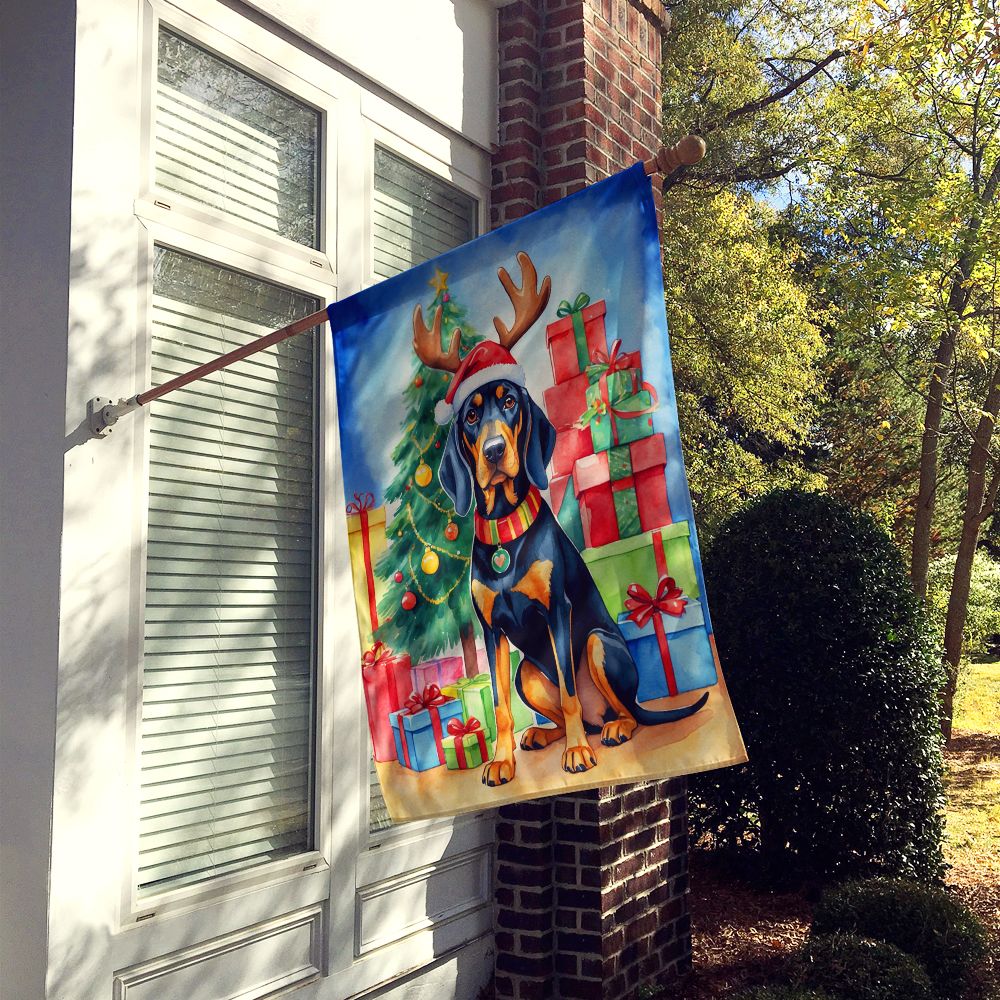Black and Tan Coonhound Christmas Reindeer House Flag Large Porch Sleeve Pole Decorative Outside Yard Banner Artwork Wall Hanging, Polyester, House Si