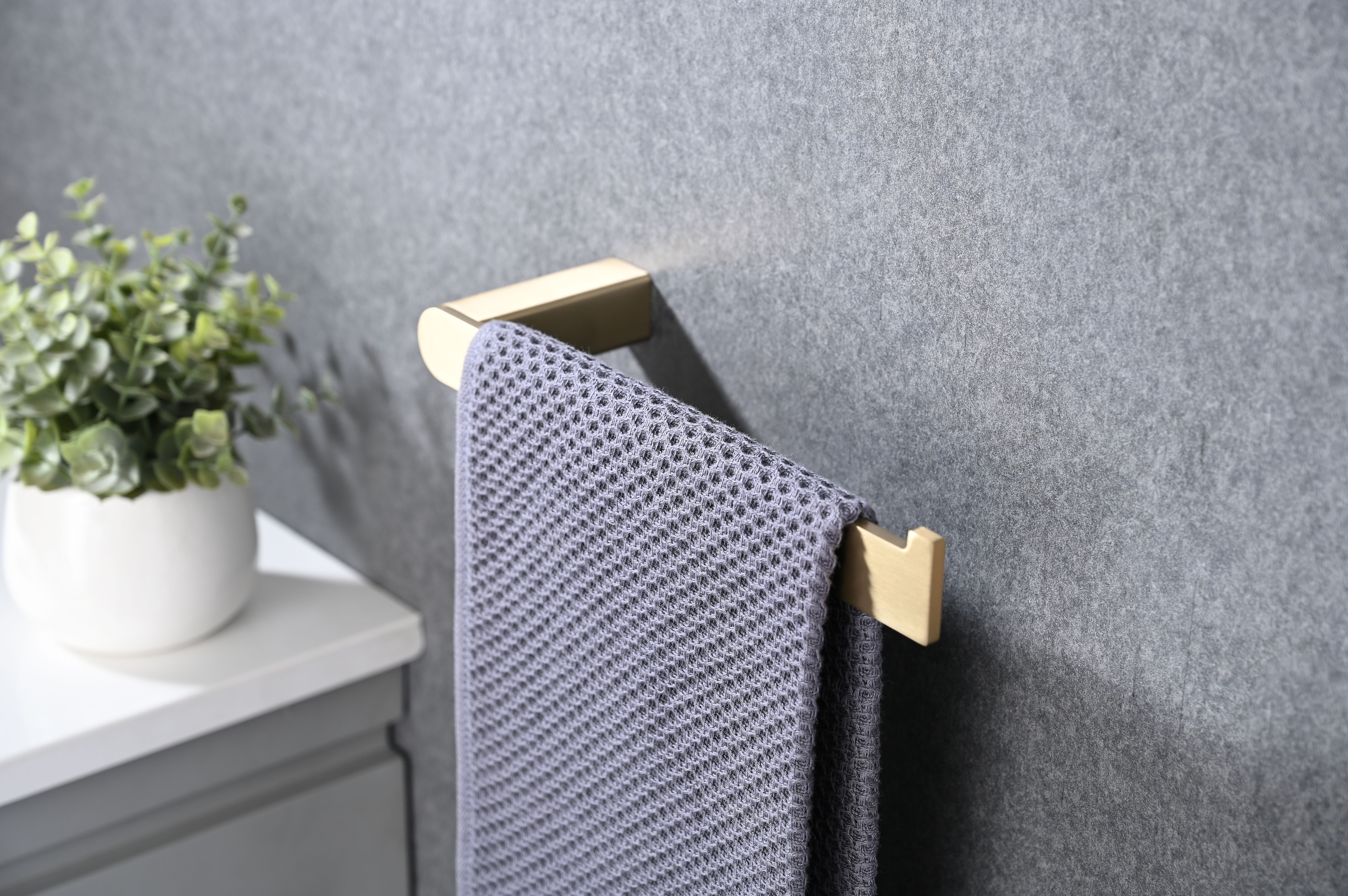 Thicken SUS304 stainless steel: the bath towel bar made of premium SUS304 stainless steel, waterproof and rust-proof, Brushed Gold finish will not fade over time, smooth surface and easy to clean.Widespread use: the towel holder can be used on smooth ceramic tile, laminate and painted wall, it employ modern and simple style design, refined lines for a high-end style.Modern design: designed with clean lines and sturdy construction, modern contemporary square design, chamfering edges protect your body from scratching.