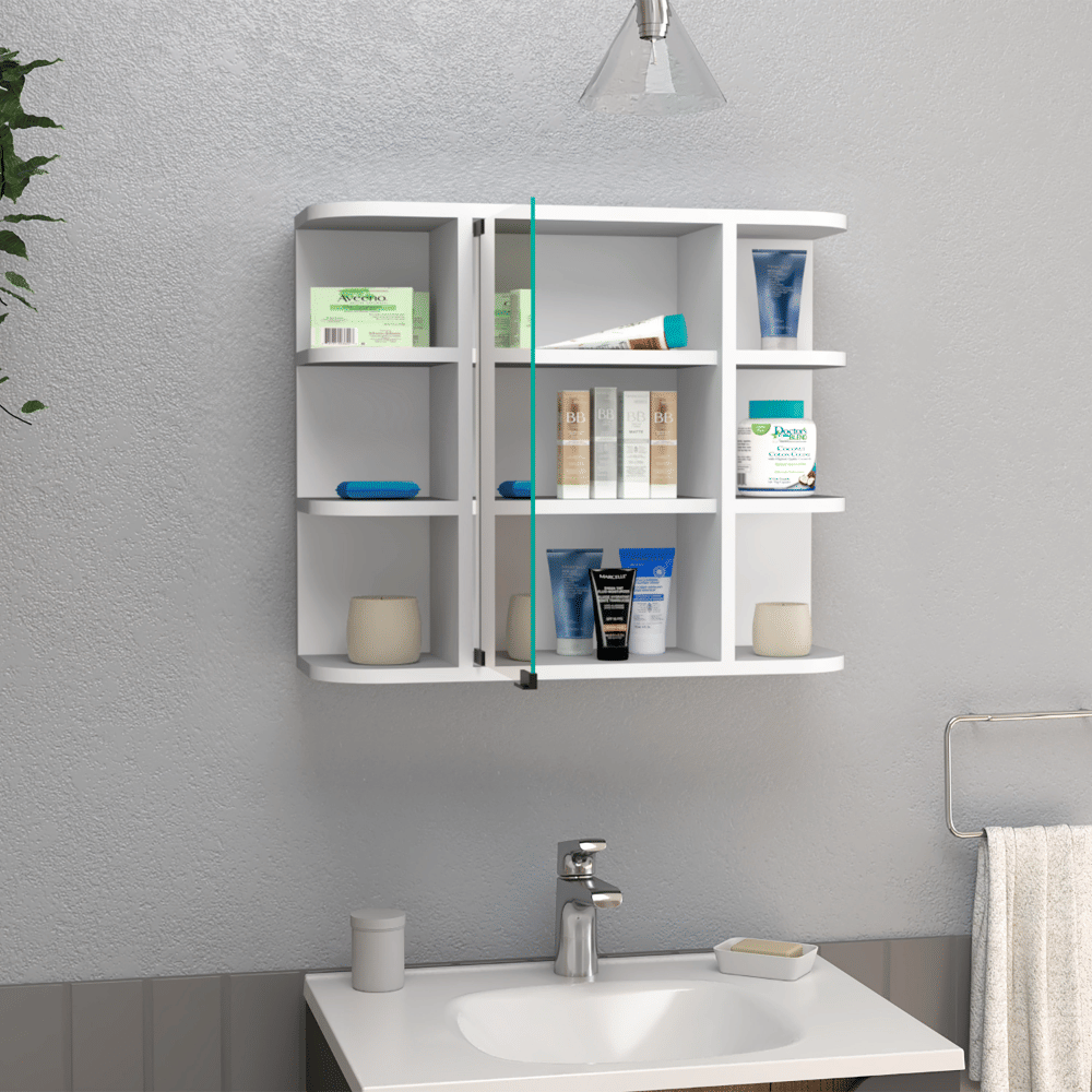 DEPOT E-SHOP Roma Mirrored Medicine Cabinet, Six External Shelves, Three Interior Shelves, White
