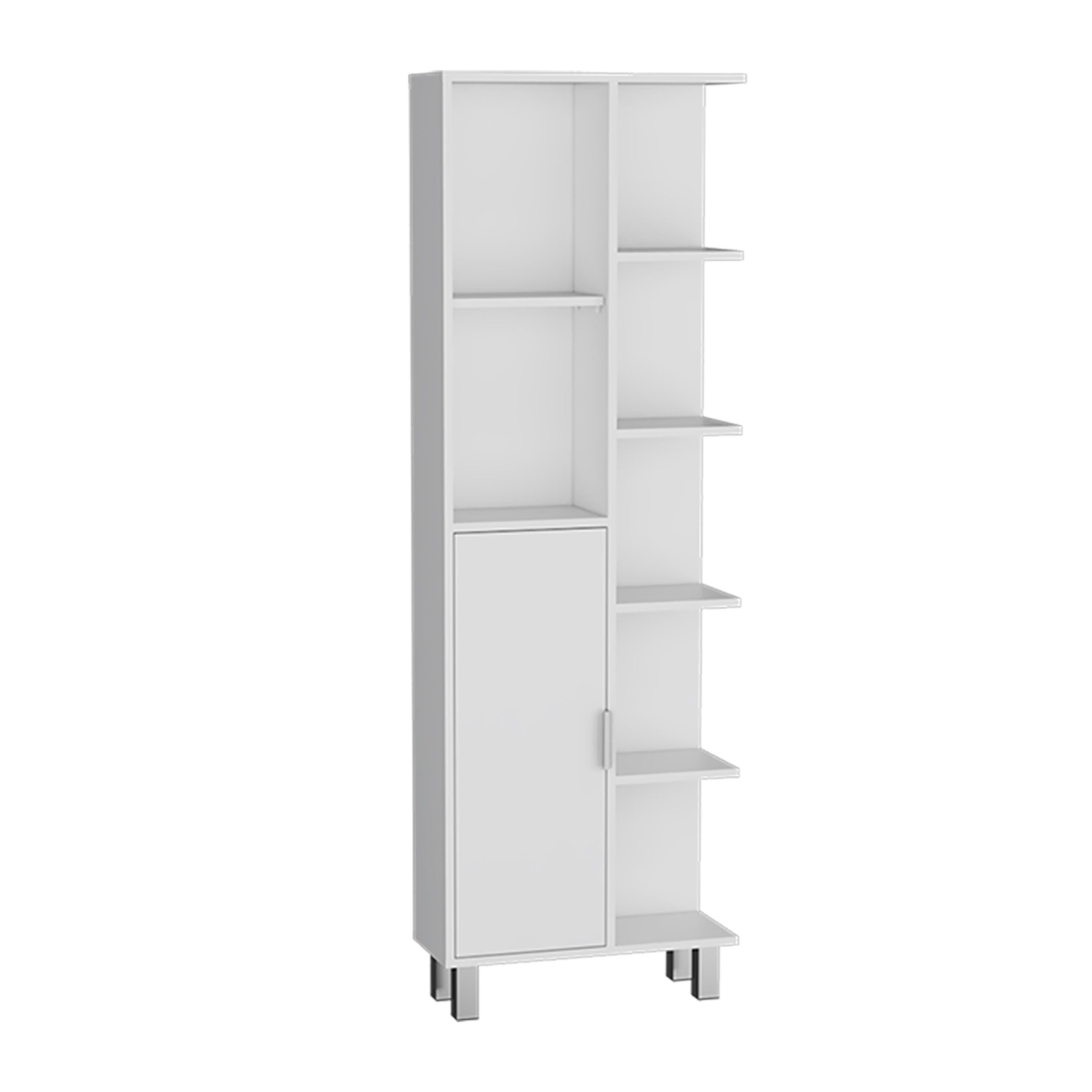 Mott 63" H Linen Bathroom Cabinet with Seven Open Shelves, One Drawer and four legs,White
