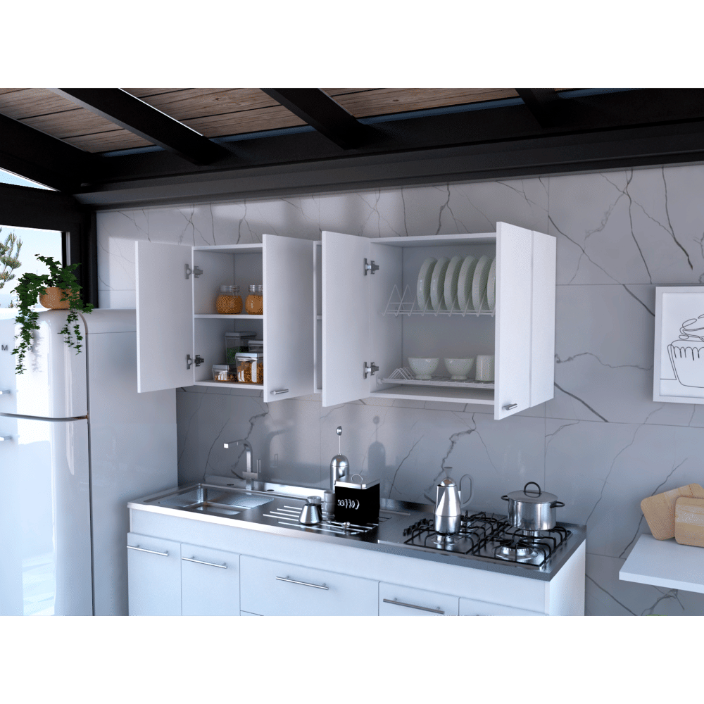DEPOT E-SHOP Olimpo 150 Wall Double Door Cabinet,Two External Shelves, Two Interior Shelves, White