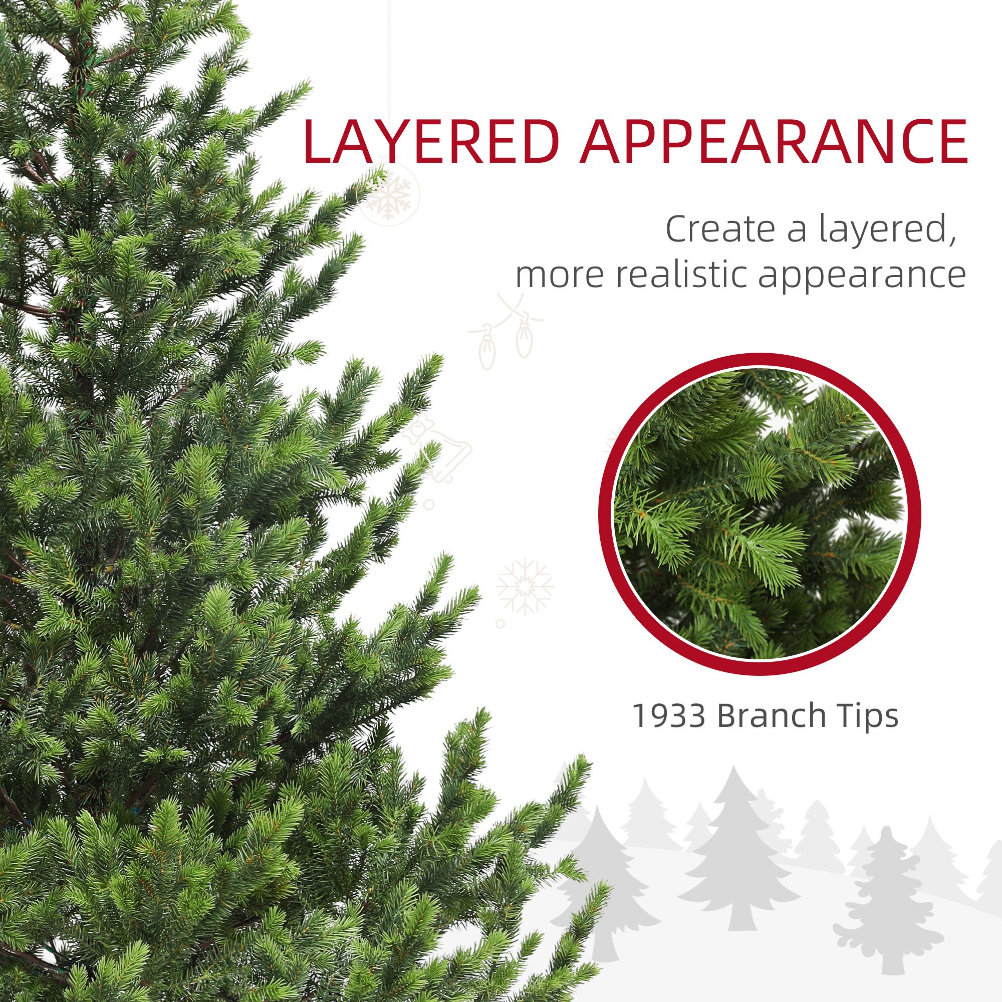 Realistic Cedar Design: Our sparse 6ft Christmas tree mimics a real cedar tree with injection-molded PE needles, a layered look that's easy to shape and solid steel branches that can easily hold decorations.
