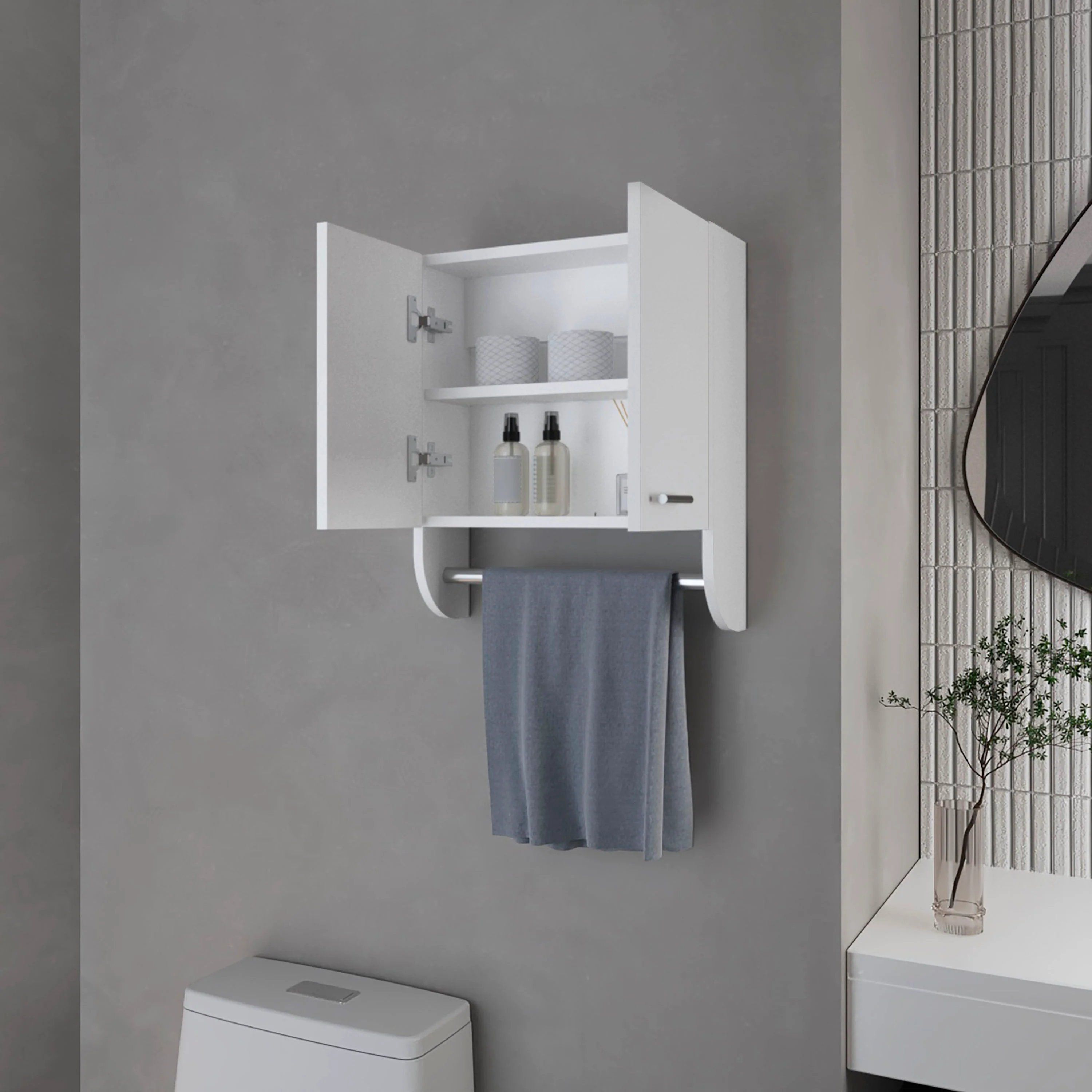 White Medicine Cabinet with Towel Bar