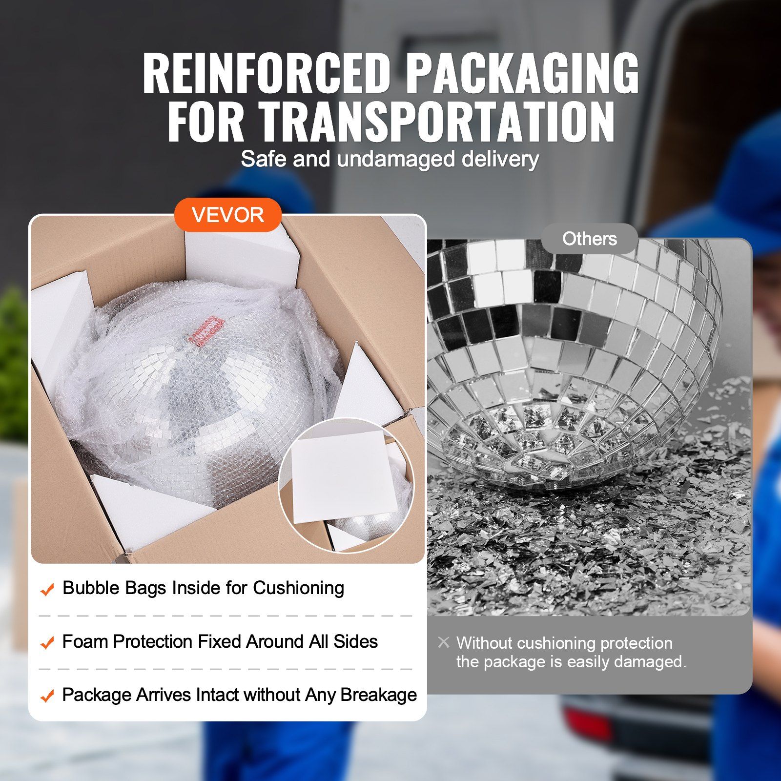 Our disco ball decor is wrapped with bubble cushioning and foam to protect it during delivery and prevent damage.