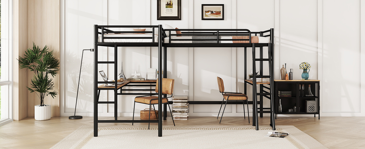 [High Quality] Our loft bed comes with two built-in desks, sleek and space-saving design adds a touch of elegance to the bedroom. It is a good place for you to read, do homework or play and create your own world to be explored or you can use it for storing function.