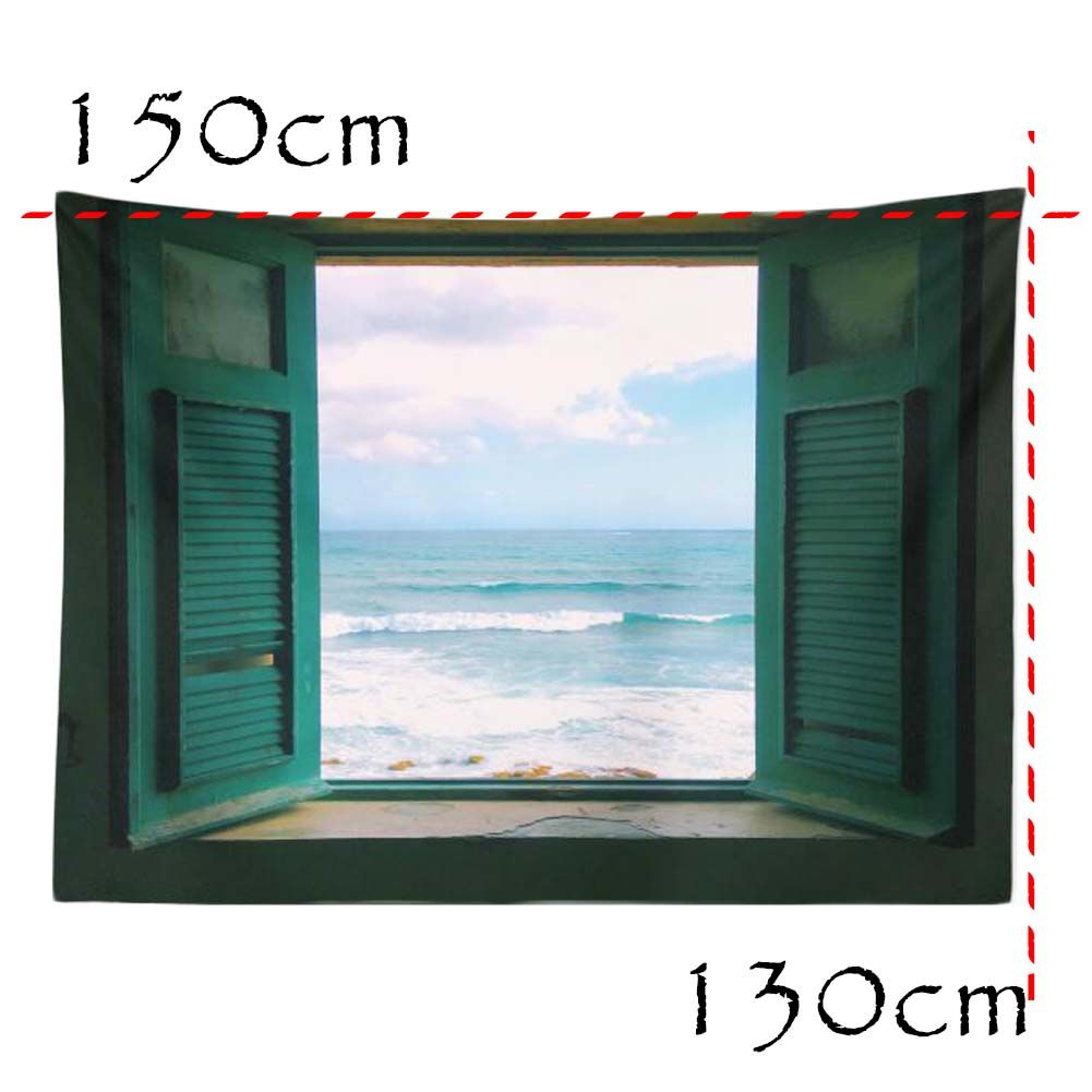 Window Seascape Wall Art Backdrop Tapestry Bedroom Dorm Bedside Wall Fake Window Green Window Tapestry Decor,59x51 inch