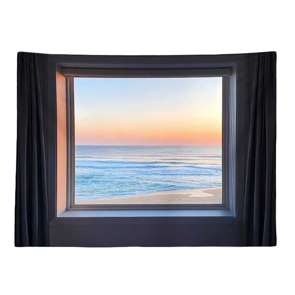 Home > Seascape Sunrise Wall Art Backdrop Tapestry Bedroom Dorm Bedside Wall Fake Window Tapestry Decor,59x51 inch